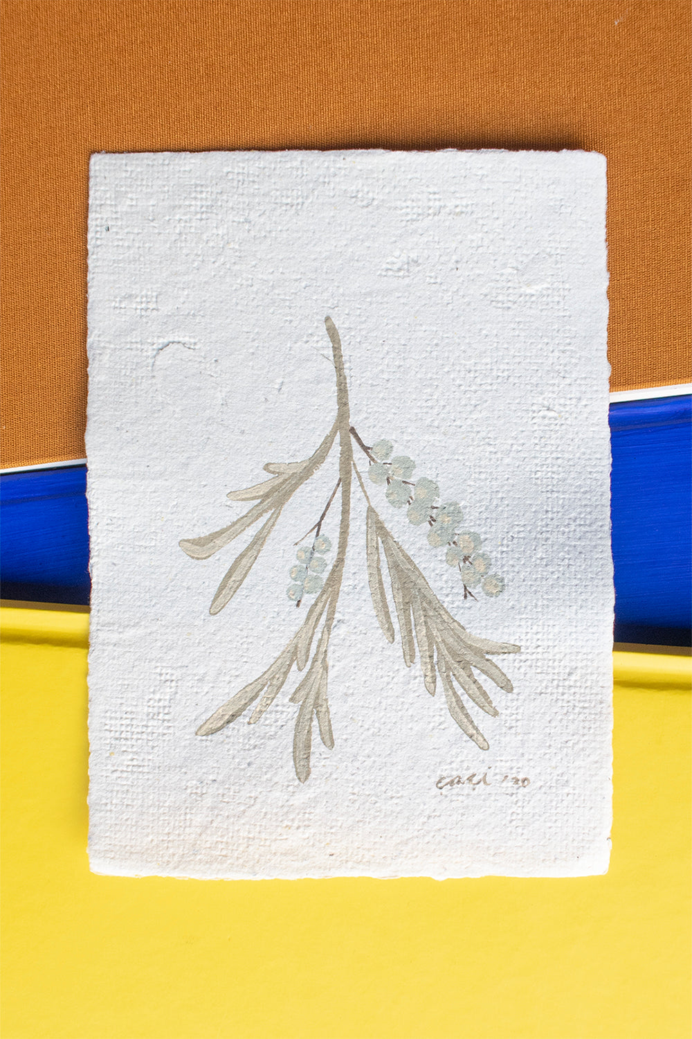 * Geri dönüştürülmüş el yapımı kağıt üzerine guaj resim.