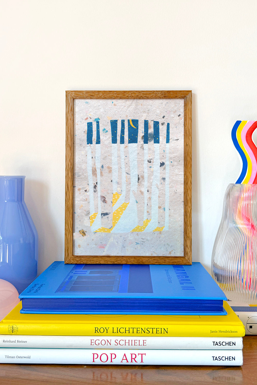 Çerçeve, linol baskıya zarif bir dokunuş katan yüksek kaliteli limba ağacından yapılmıştır.