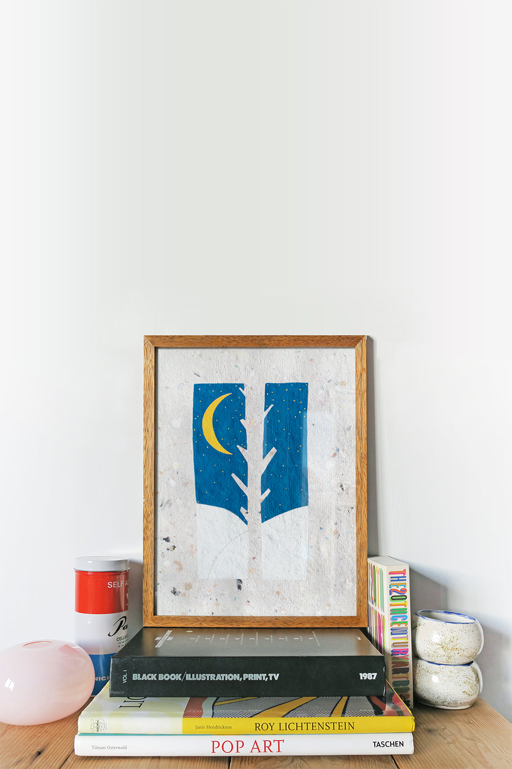 Çerçeve, linol baskıya zarif bir dokunuş katan yüksek kaliteli limba ağacından yapılmıştır.