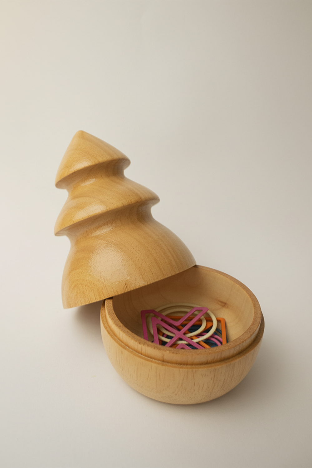 Yılbaşı ağacı formunda, modern masaüstü dekor. İç kısmı açılabilir; küçük objeler, takılar, minik hediyeler veya saklamak istediğiniz özel eşyalar için.