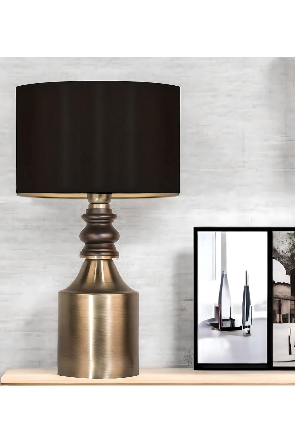 sade siyah kumaş abajuru sayesinde ortama loş, yumuşak bir ışık yayar.