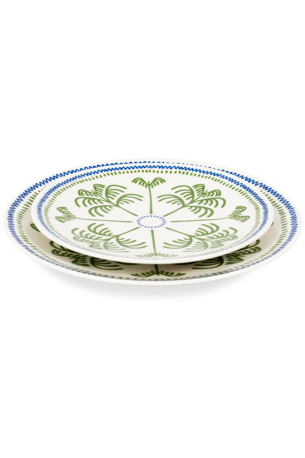 La Palma, büyüleyici palmiye deseniyle egzotik ve masalsı bir dünyanın kapılarını aralar. Mavi ve yeşil tonları, sofranıza zahmetsiz bir şıklık ve canlı bir enerji katarak onu her sofranın gerçek yıldızı haline getirir.
