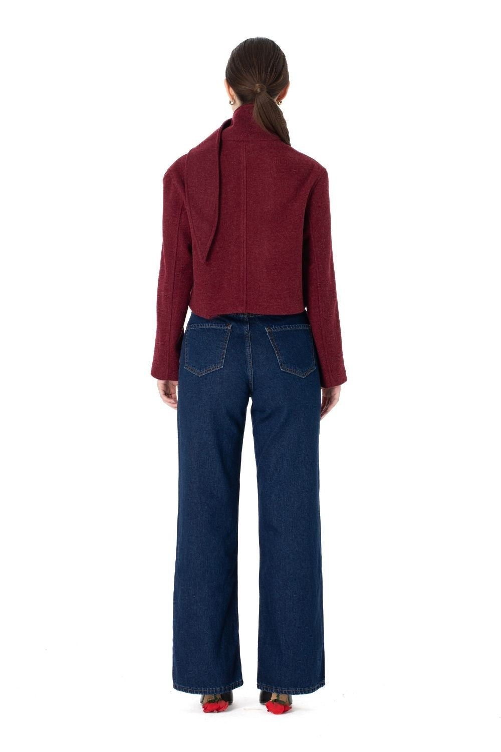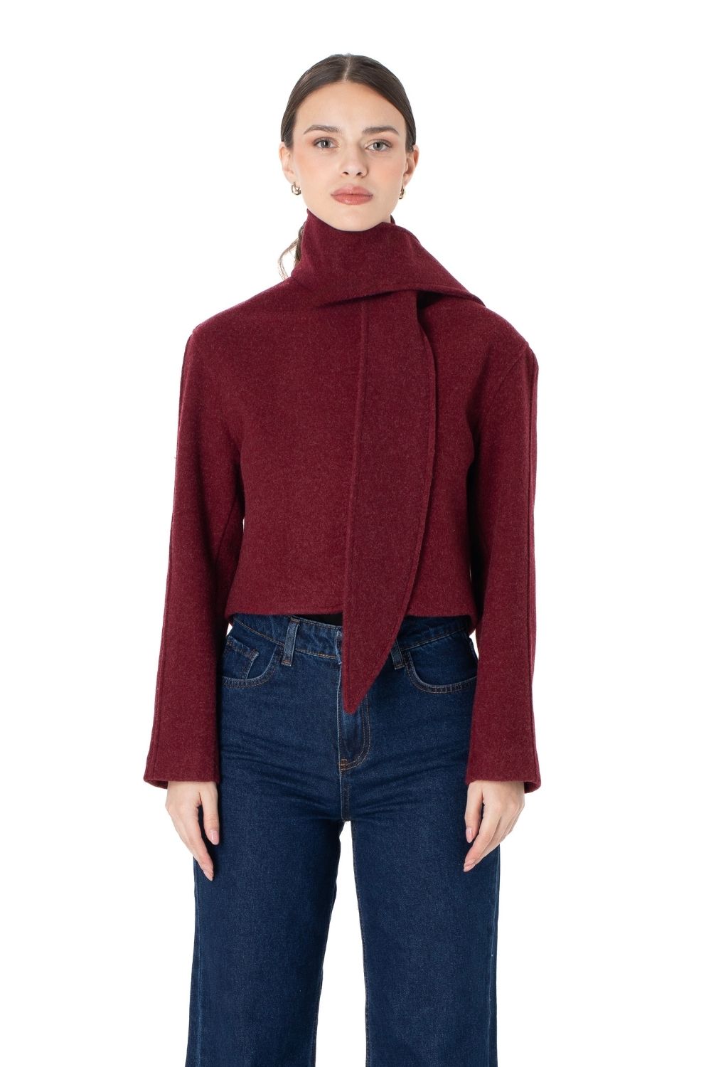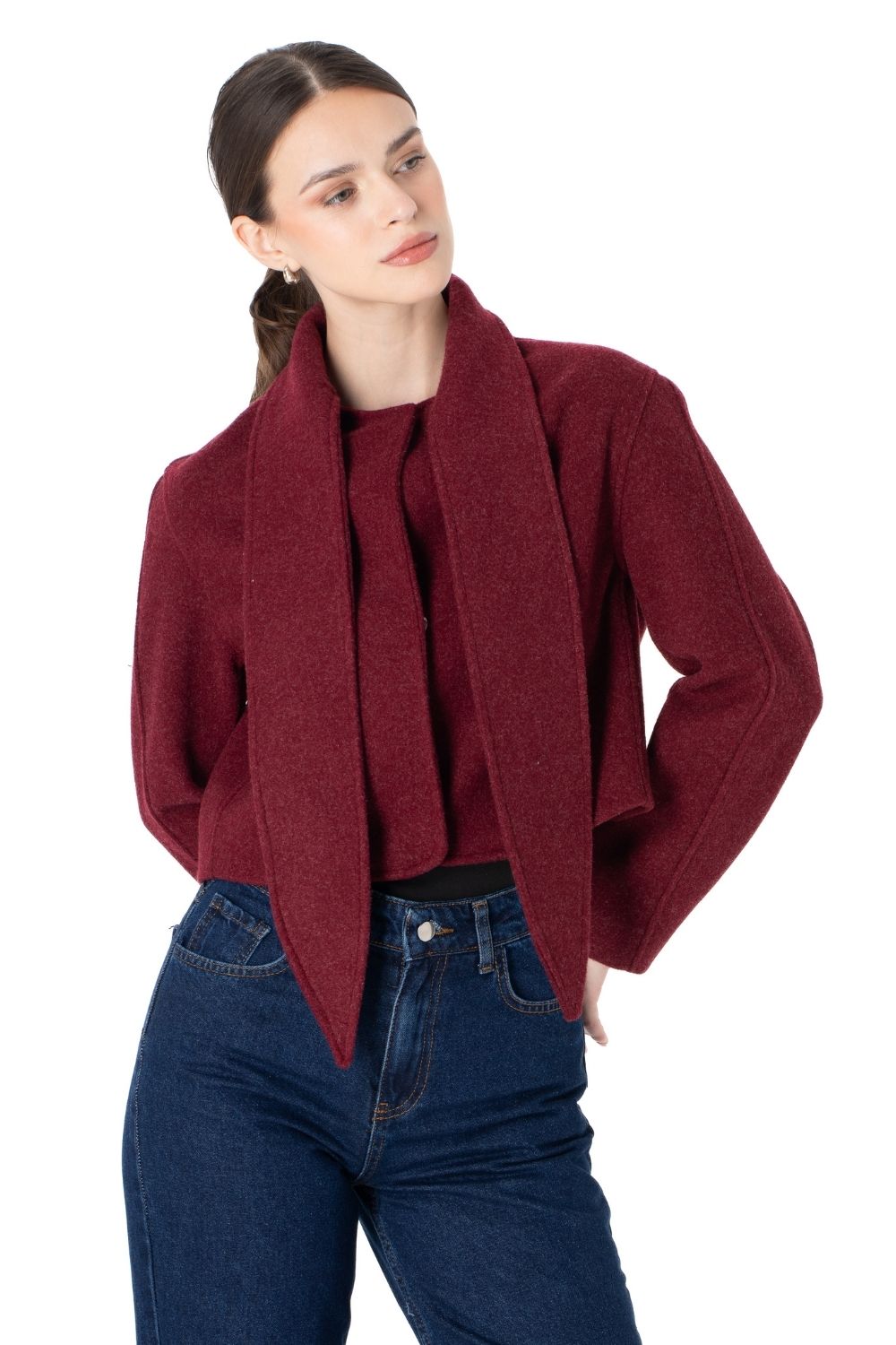 Şal Yaka Yün Ceket Bordo