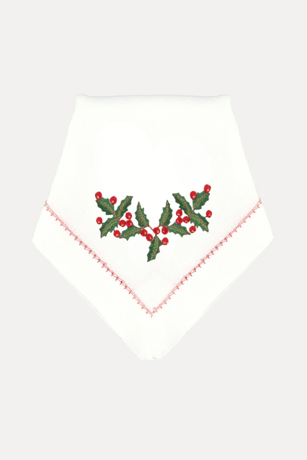 Christmas Çiçek Nakışlı Peçete – Beyaz / Kırmızı & Yeşil