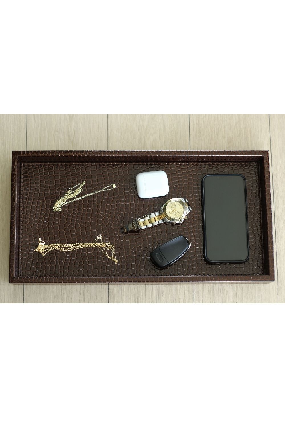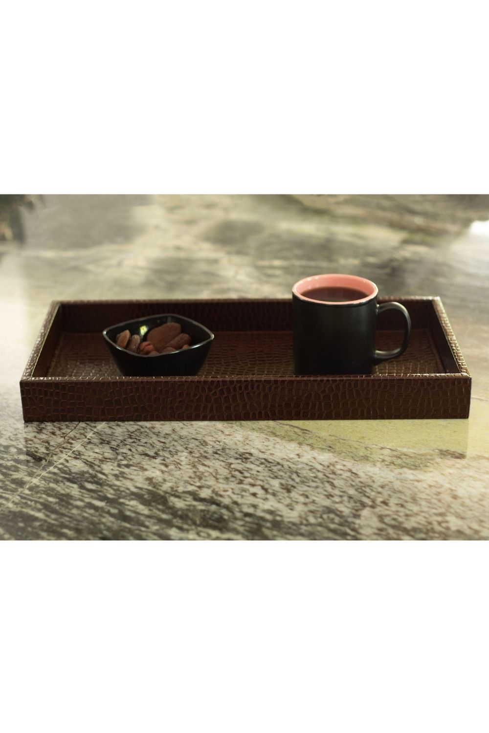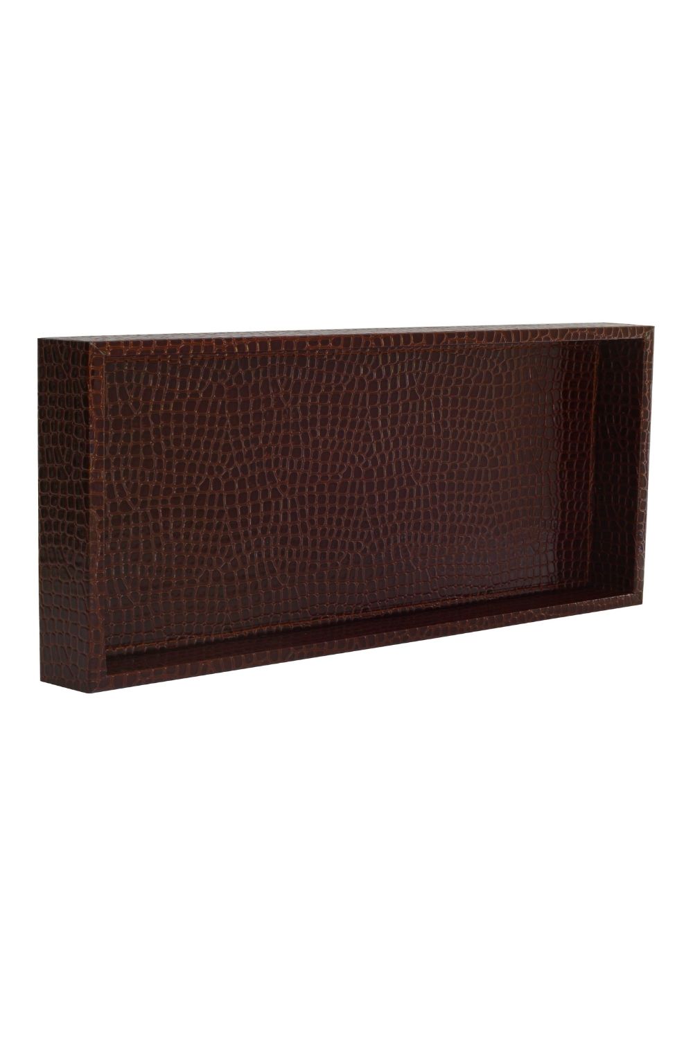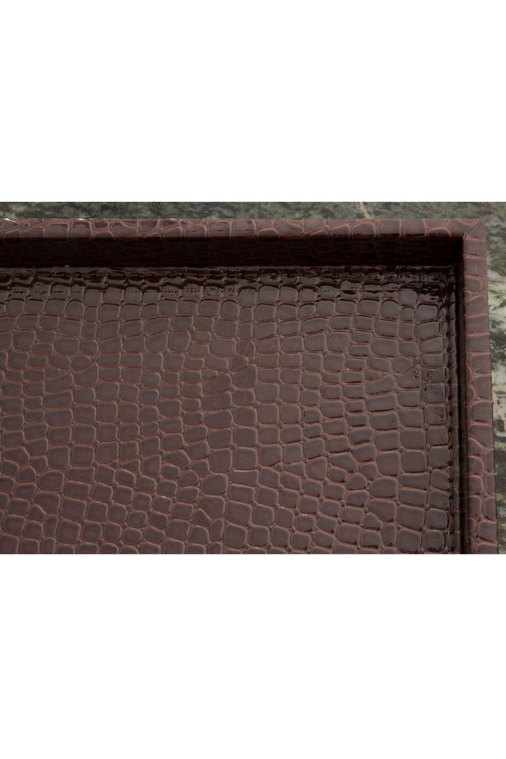 Studio Modern Tasarım Krokodil Desenli Büyük Boy Kahverengi Suni Deri Tepsi