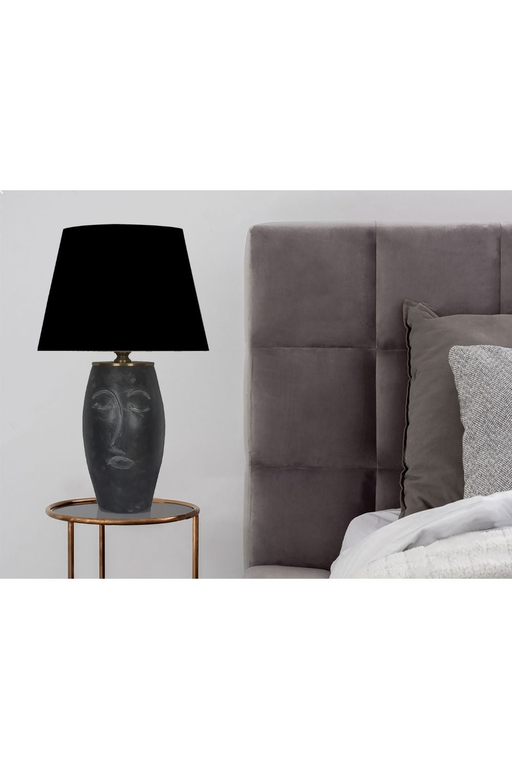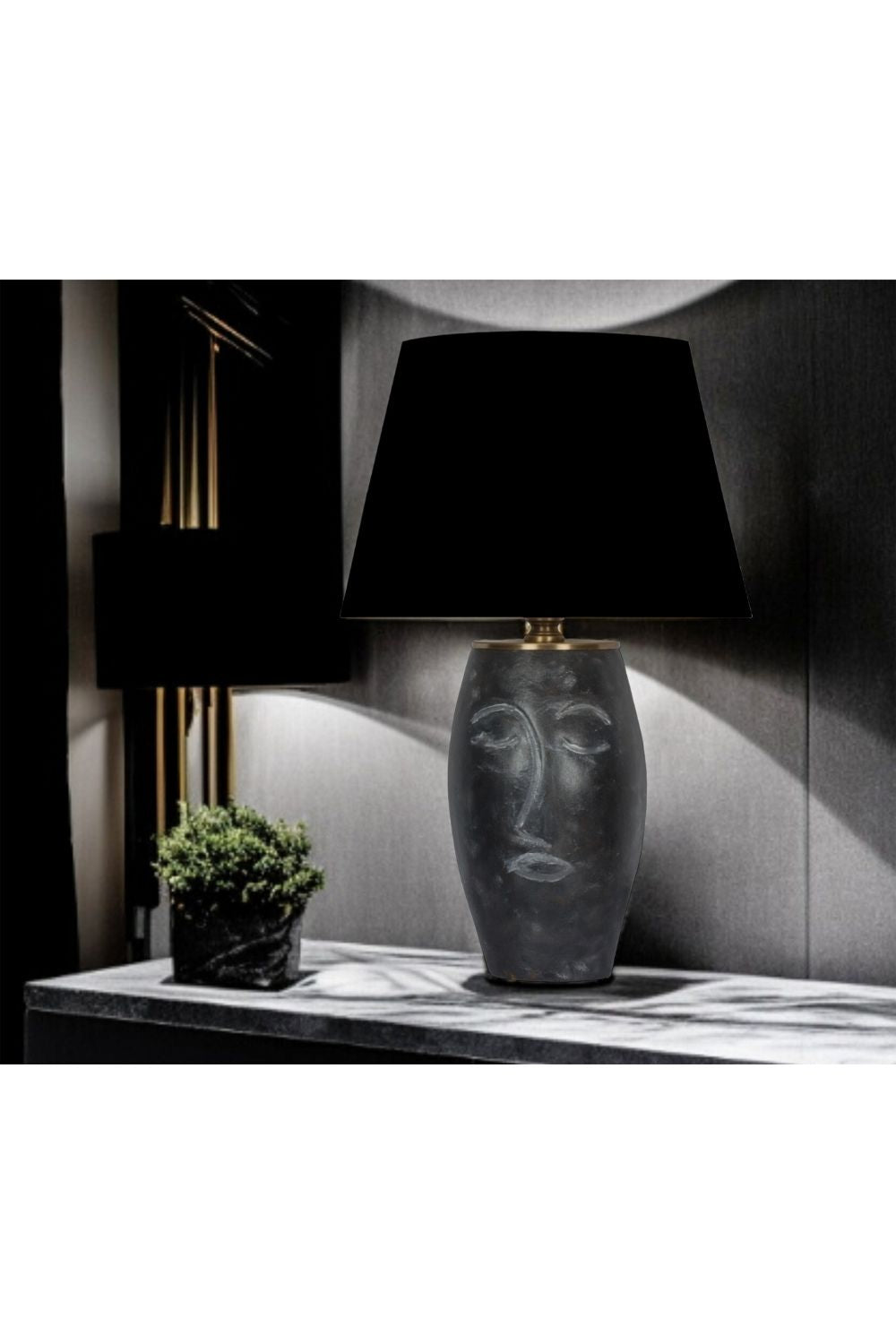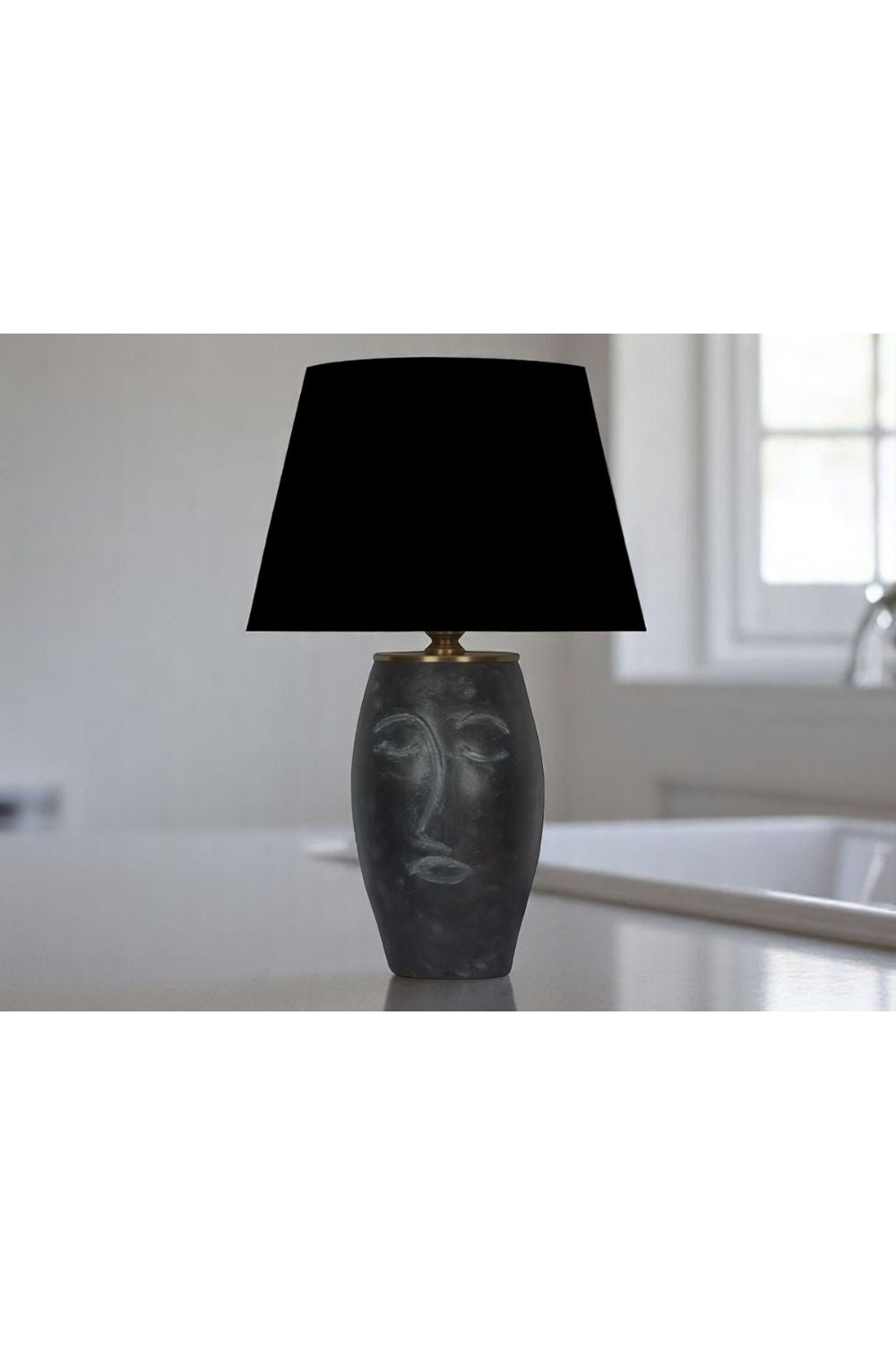Siyah Abajurlu Yüz Figürlü Seramik Masa Lambası - Siyah Başlık