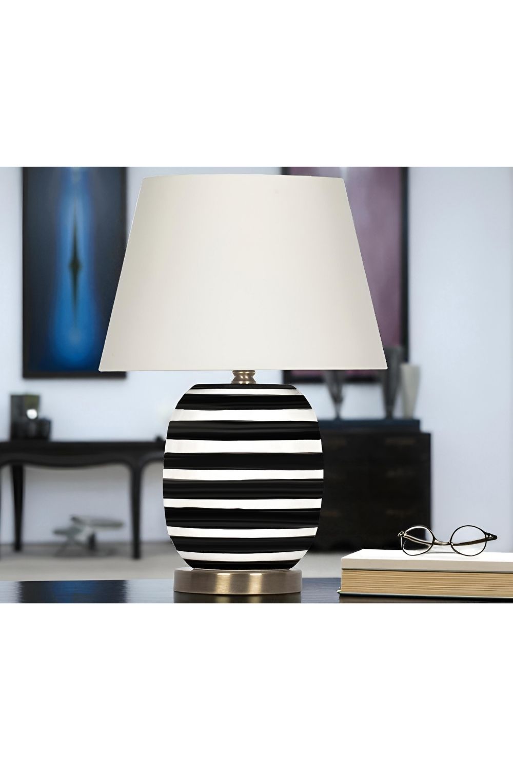 Madrid Seramik Abajur – Siyah Beyaz Çizgili Modern ve