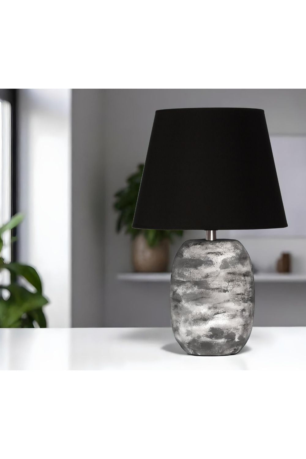 Stonetouch Seramik Abajur – Siyah Şapkalı Doğal Doku