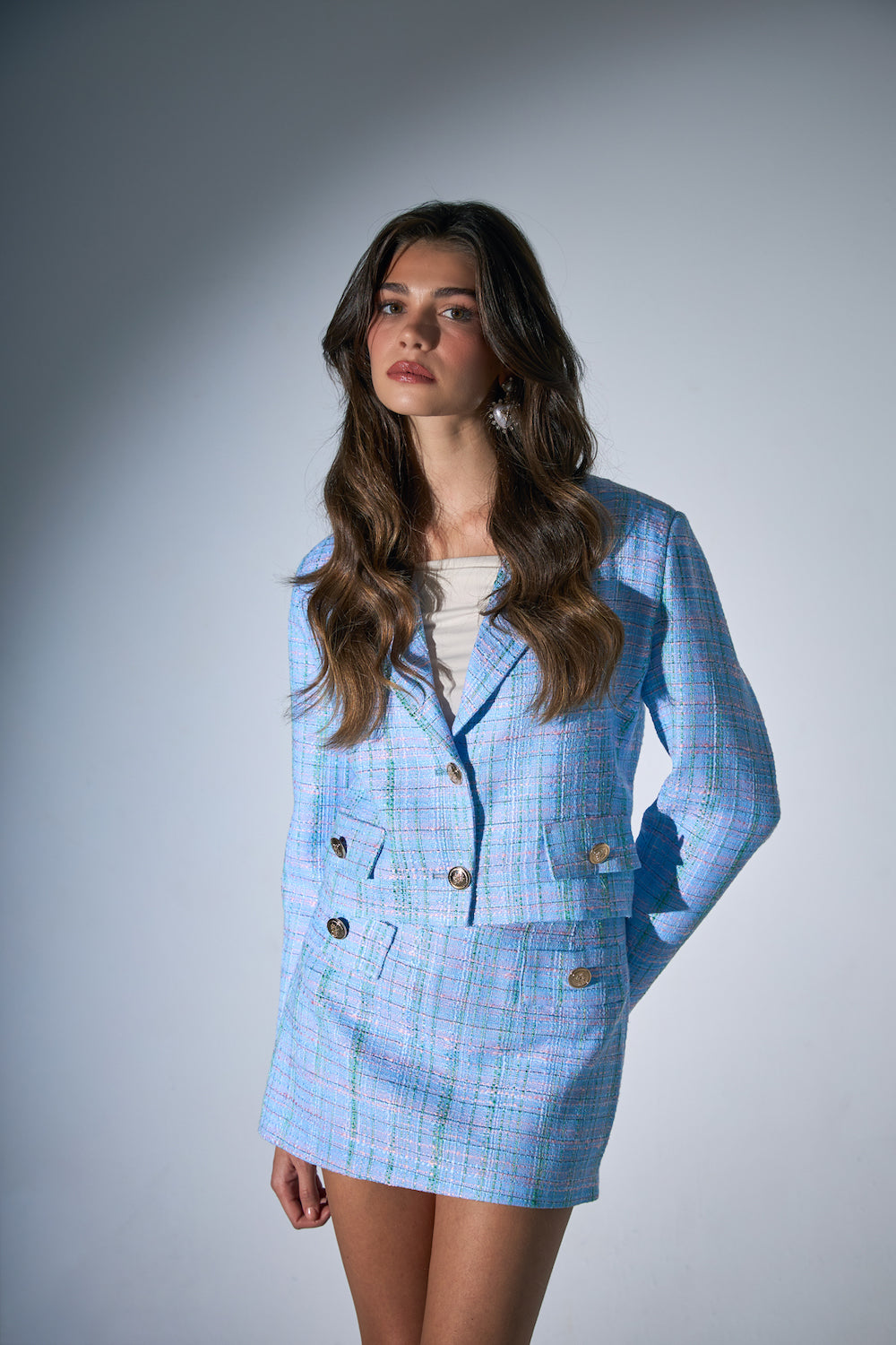 İster aynı kumaş ceketle takım olarak kullanın, ister basic bir triko veya saten gömlekle kombinleyin; bu etek her stile uyum sağlayan güçlü bir anahtar parçadır.