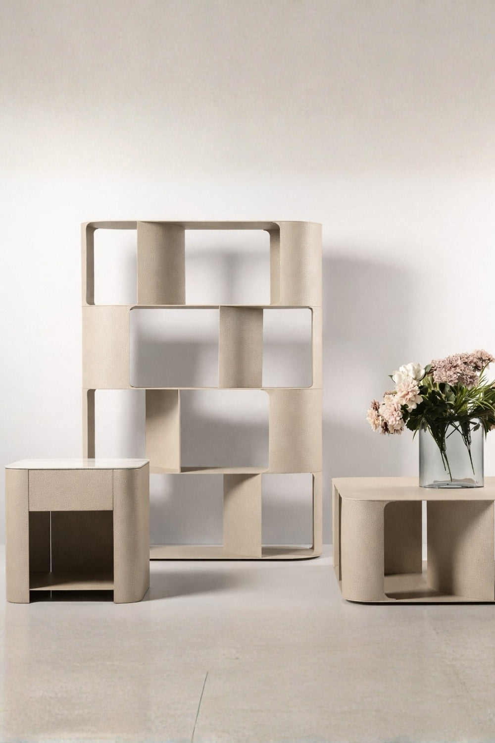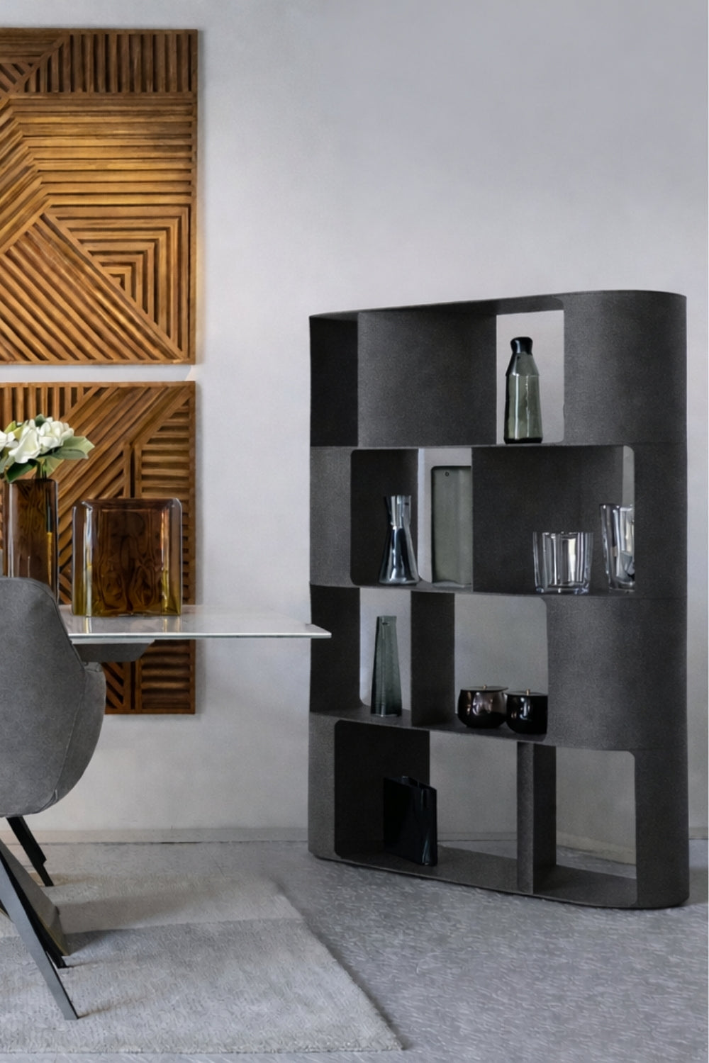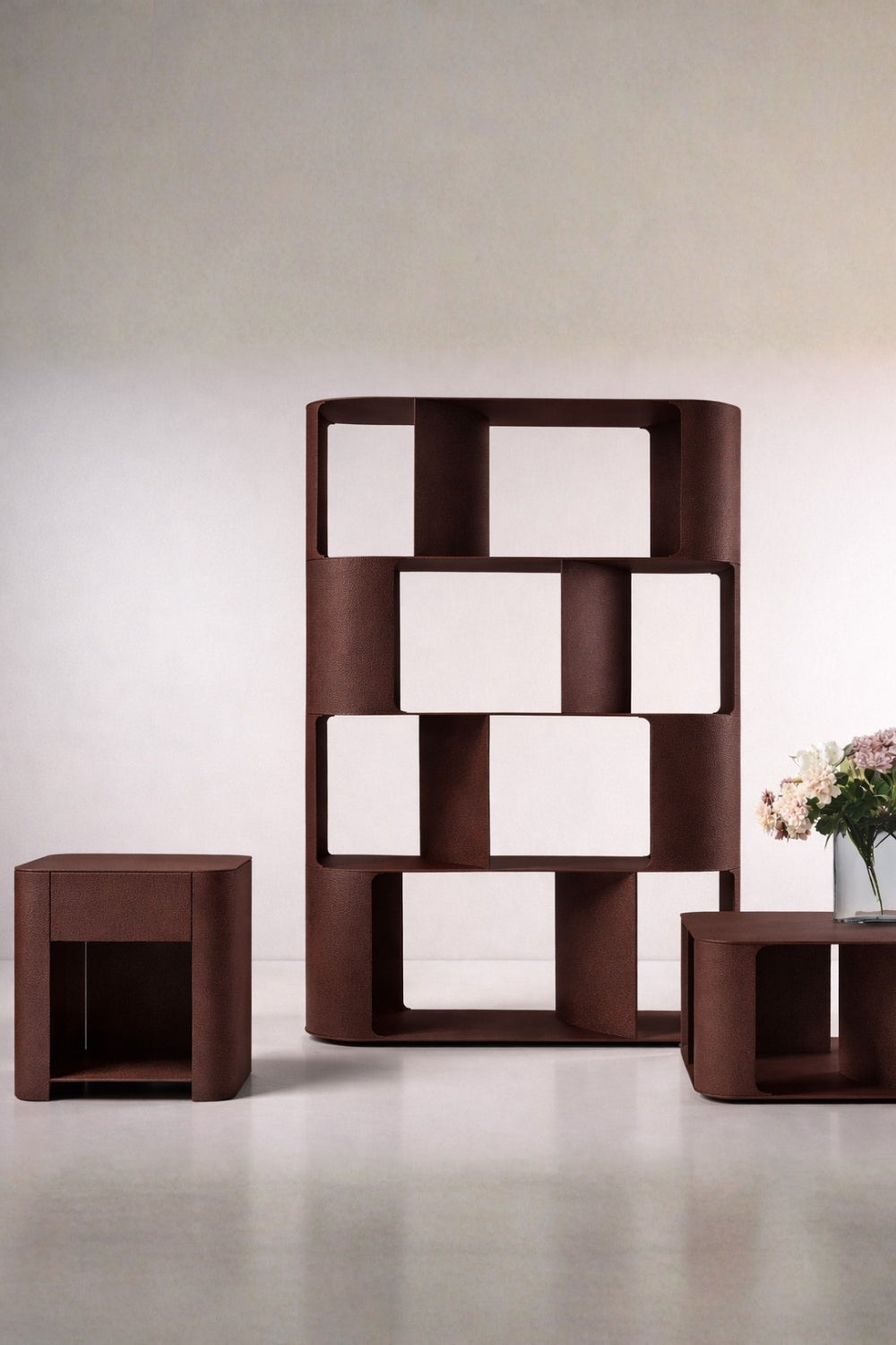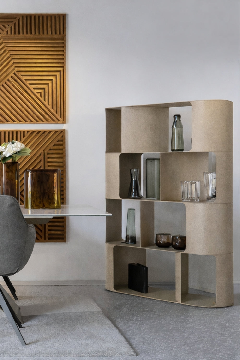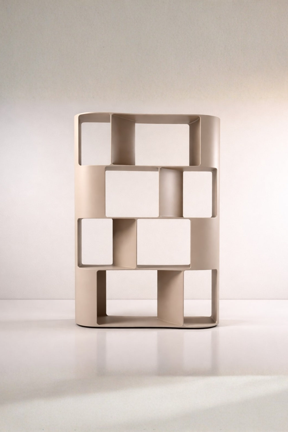 Round Raf, heykelsi formu ve akıcı hatlarıyla yaşam alanlarına zarif bir estetik kazandırır. Tek parça metal yapısıyla güçlü bir duruş sergiler ve hem kitaplık hem de dekoratif obje alanı olarak kullanılabilir.