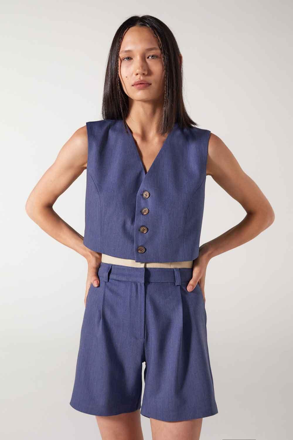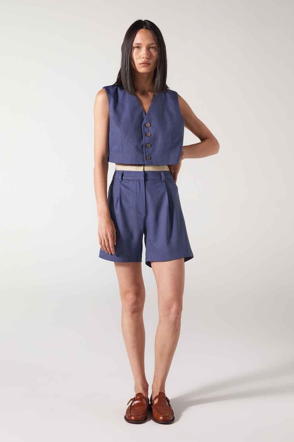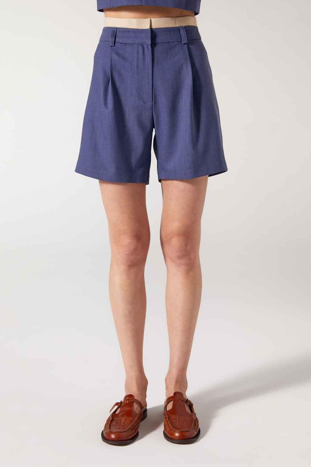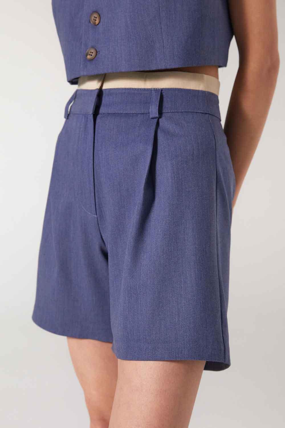 Pantalones cortos plisados Cle azul