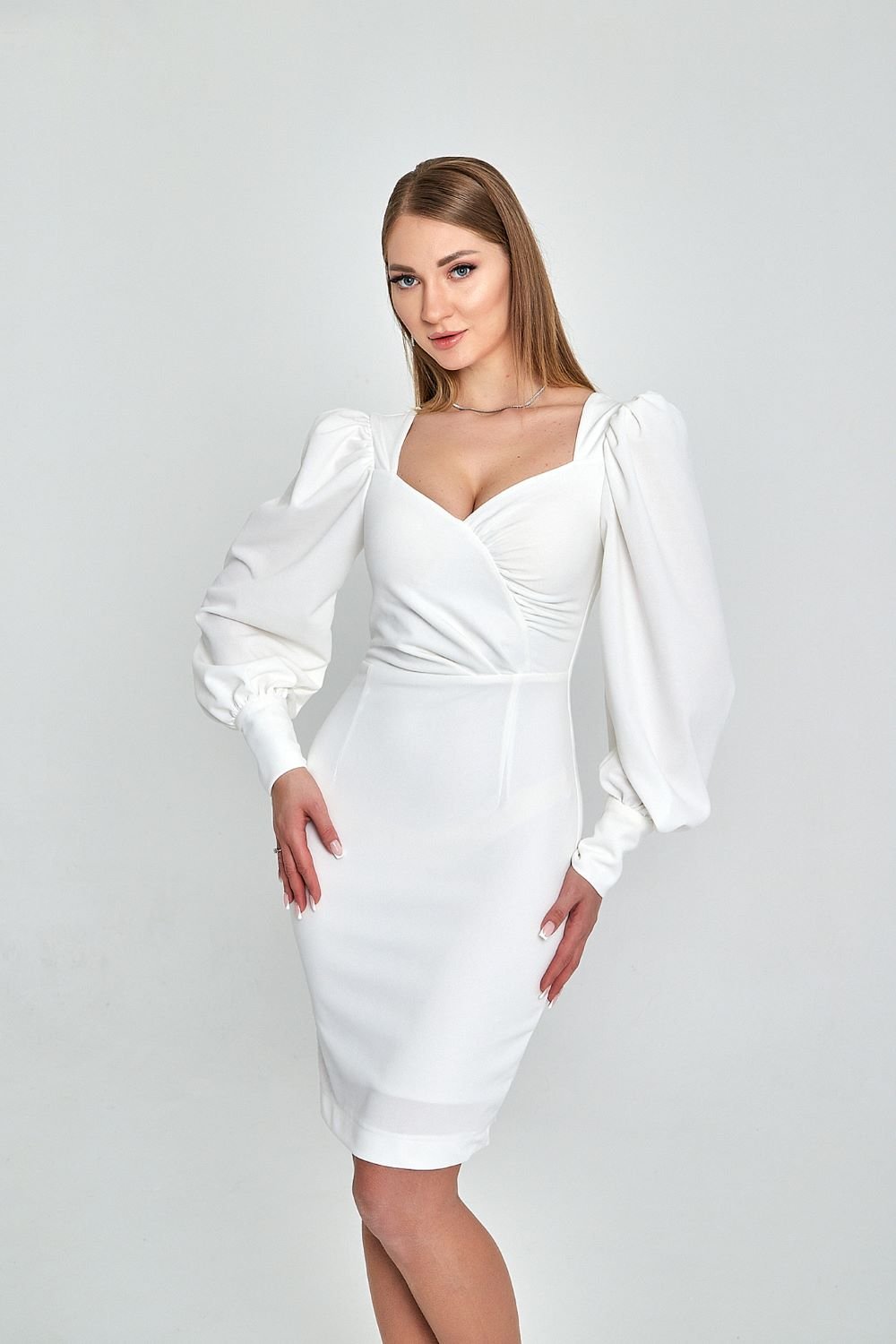 Beyaz Midi Boy Vücuda Oturan Krep Elbise