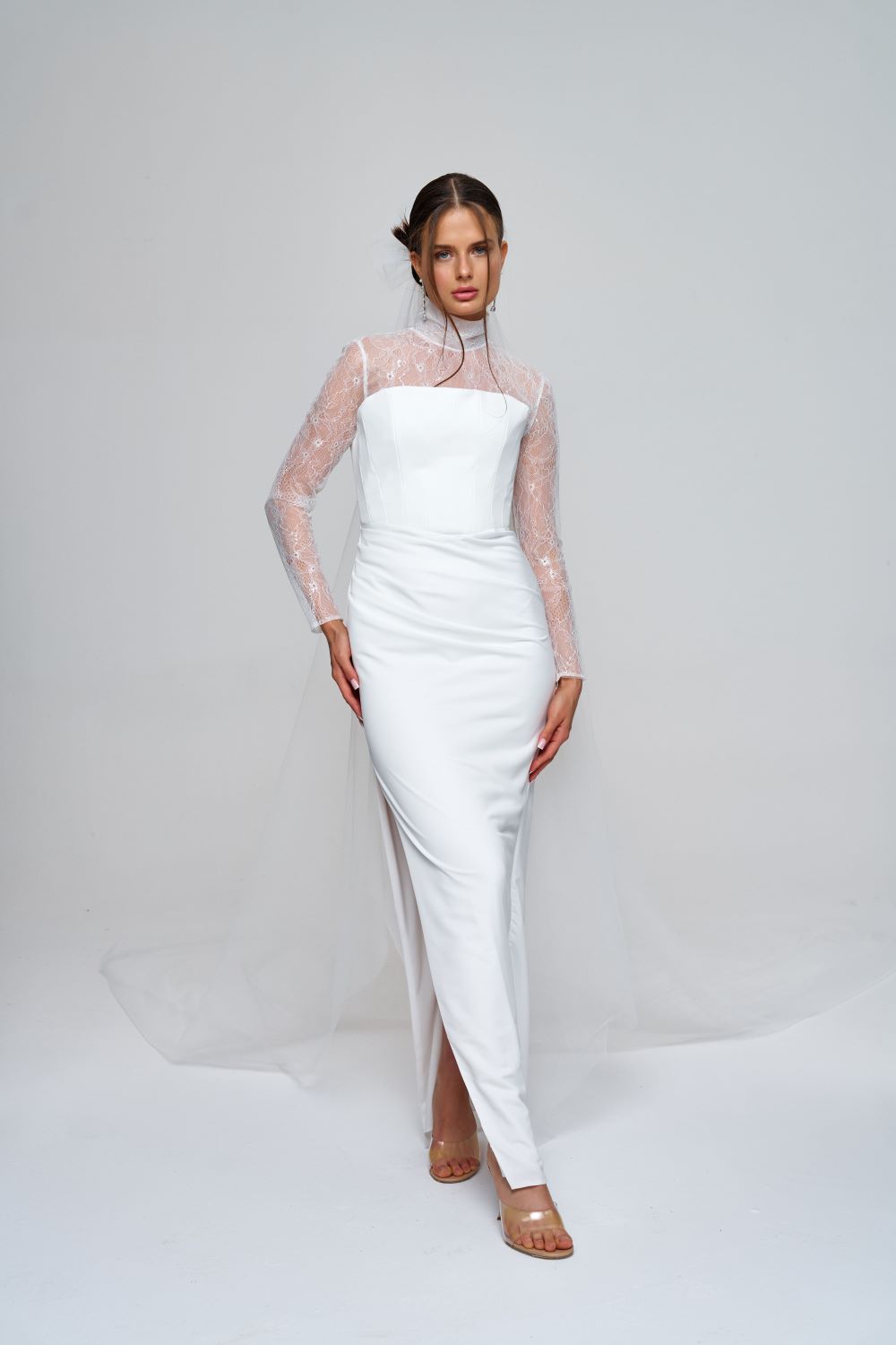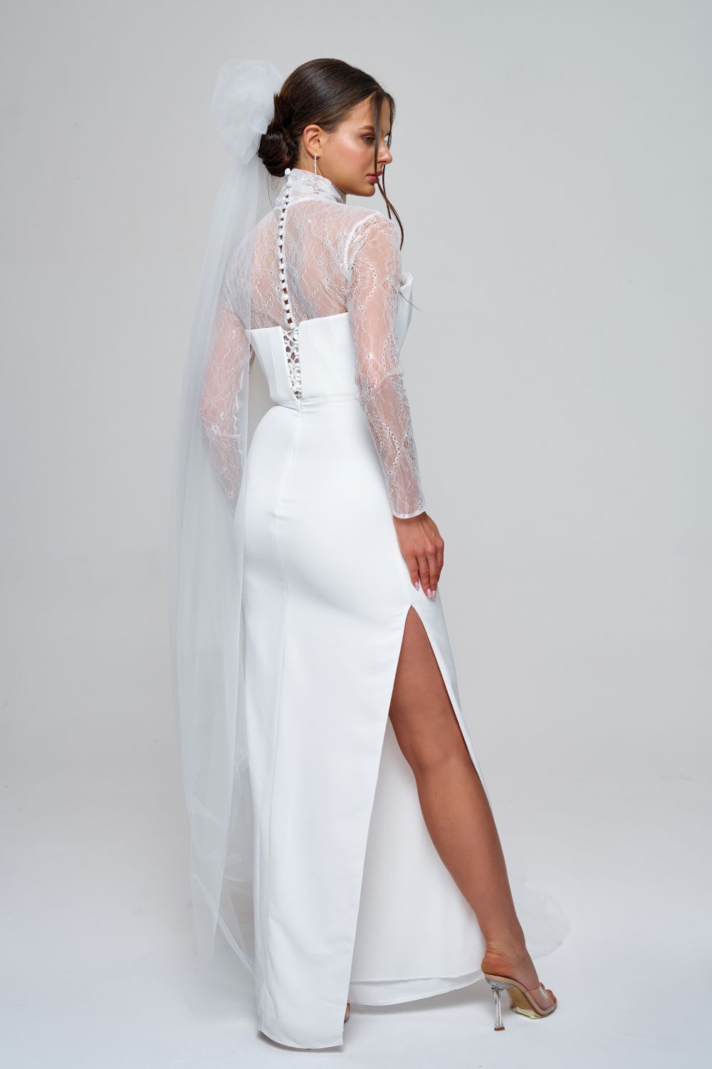 İçi astarlı miotti saten ip kapama ve fermuarlı elbise.