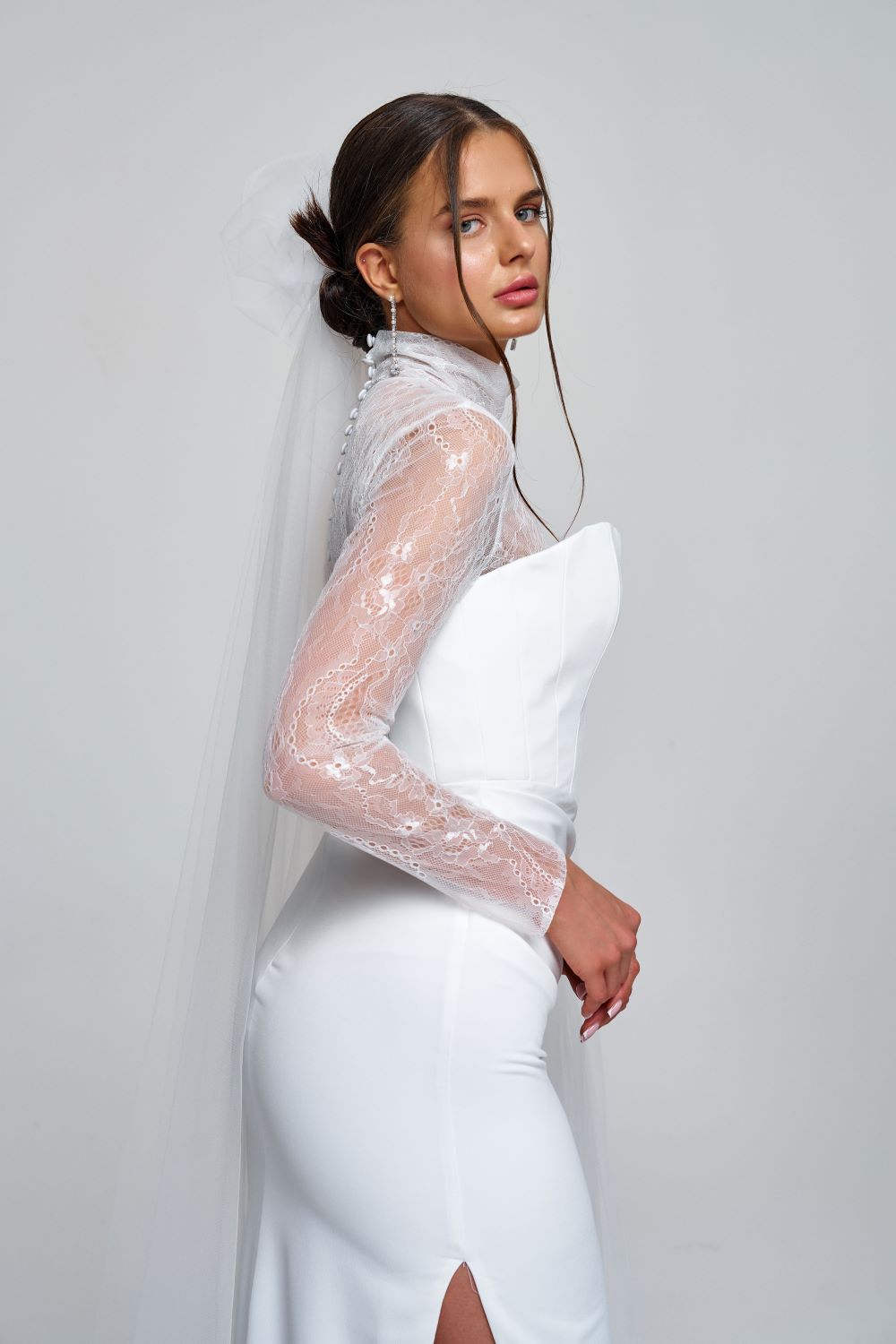 Fransız Dantel Yırtmaçlı Drapeli Elbise