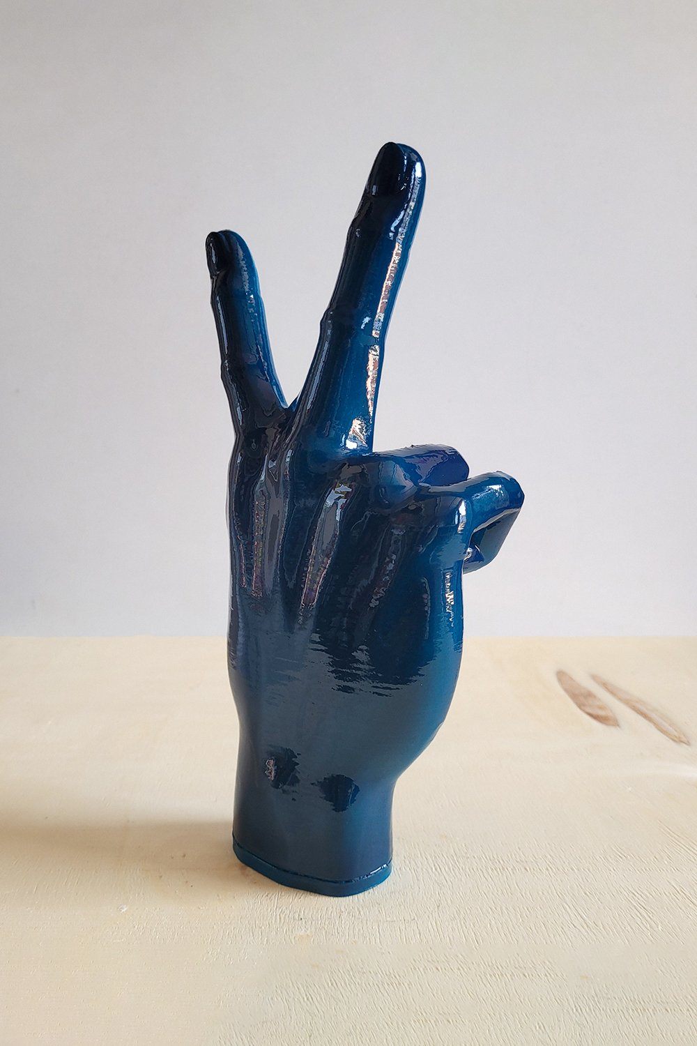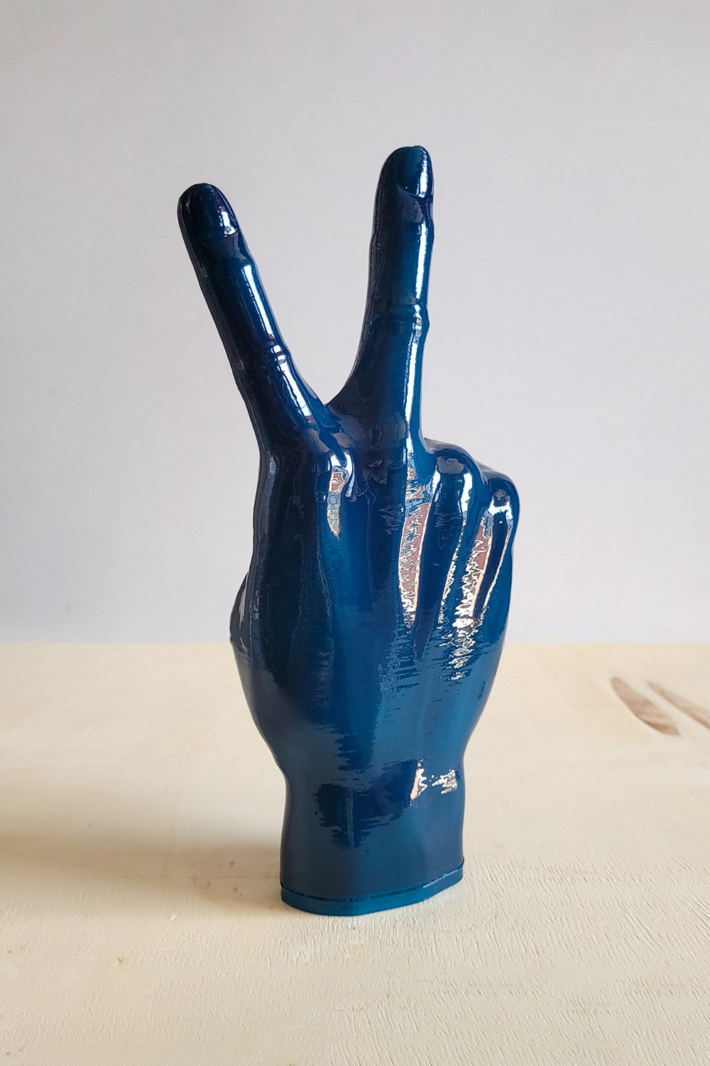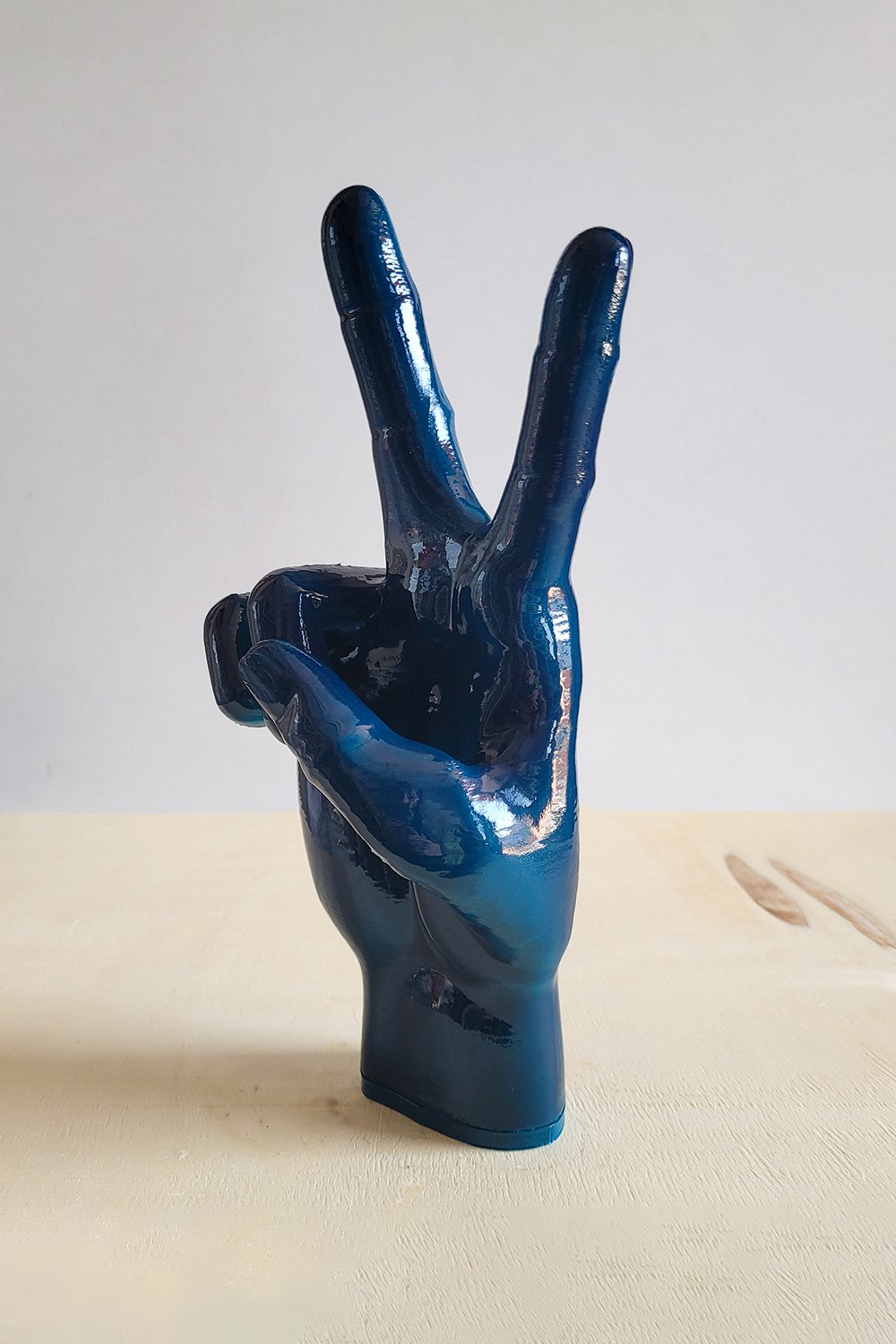 PLA biyopolimer malzemeden 3D baskı tekniğiyle üretilmiş, ardından el işçiliğiyle tamamlanmıştır.