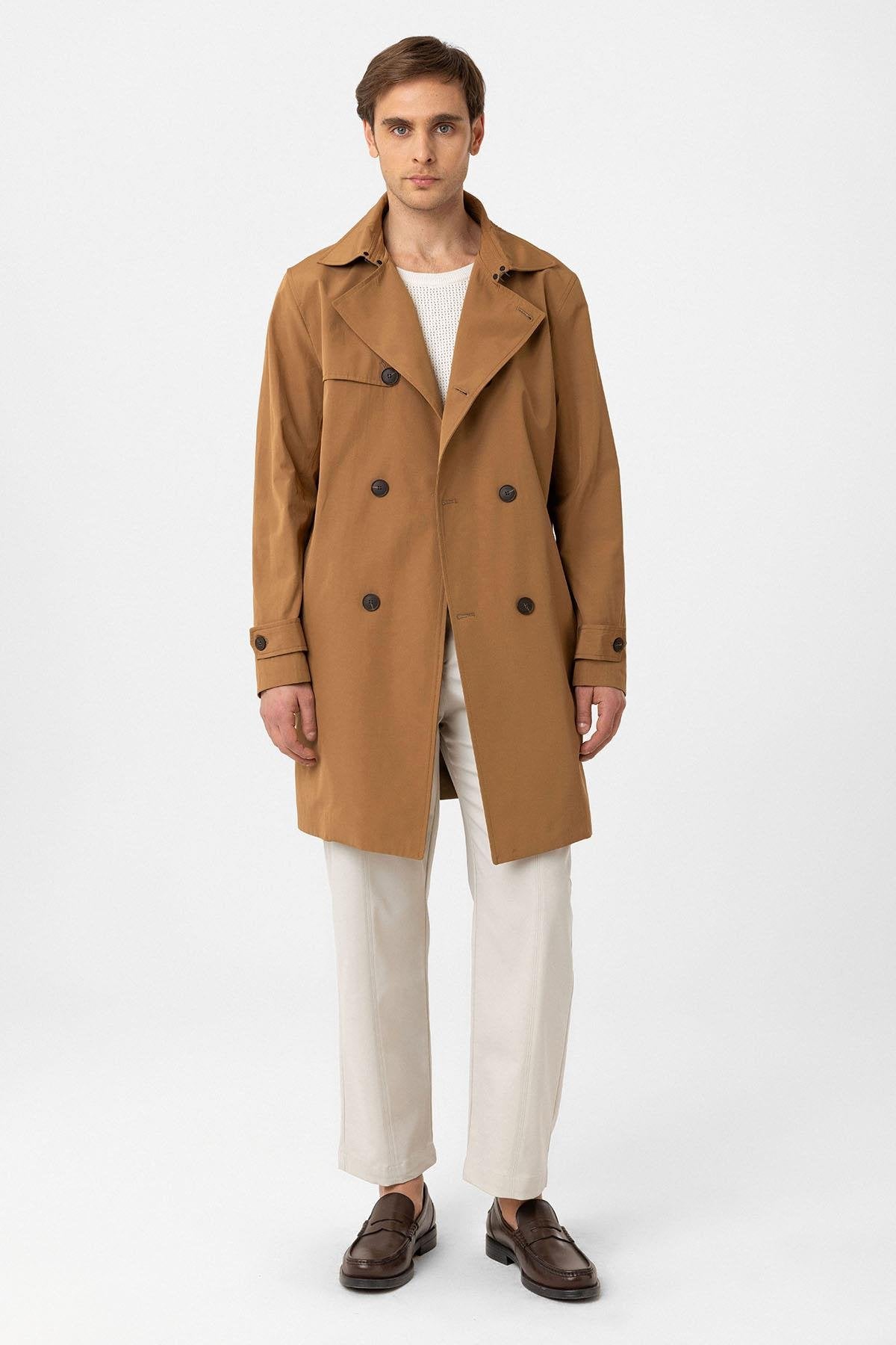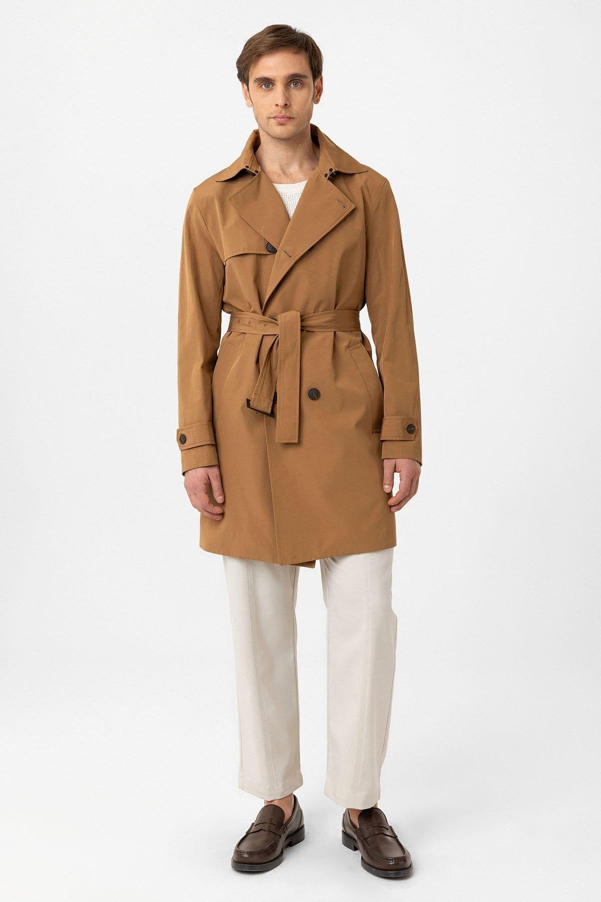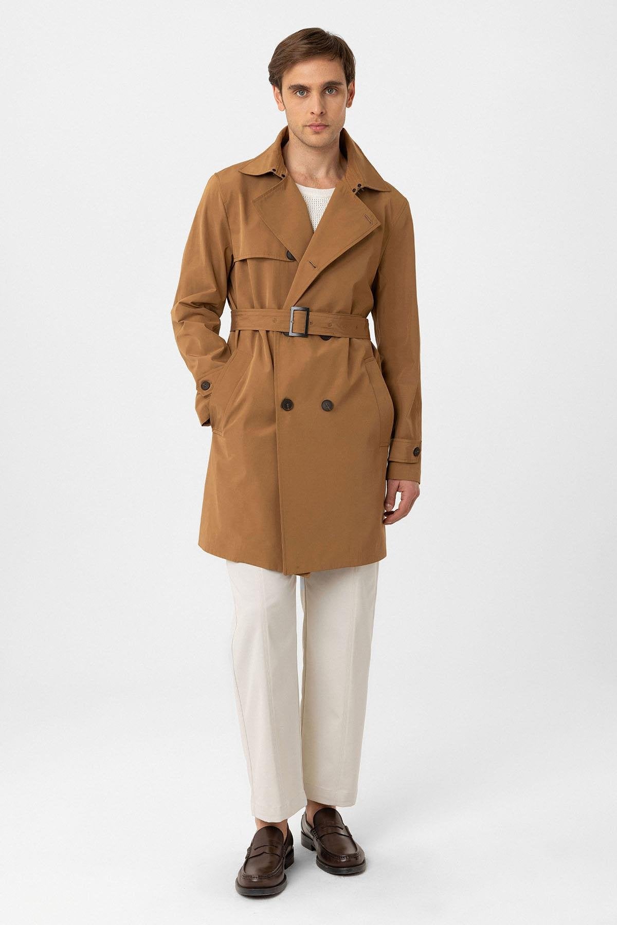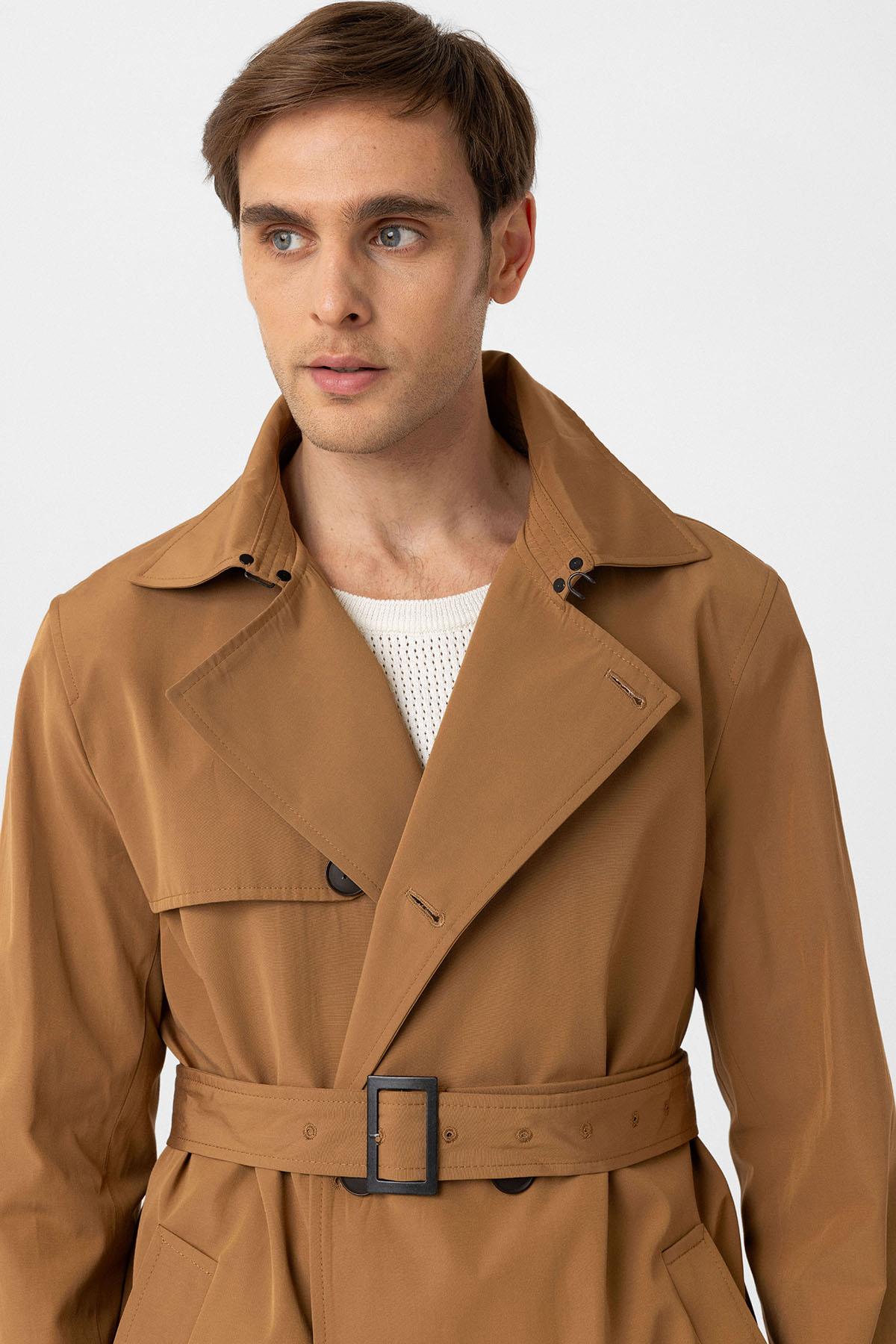 Koyu Camel Kuşaklı Kruvaze Trençkot