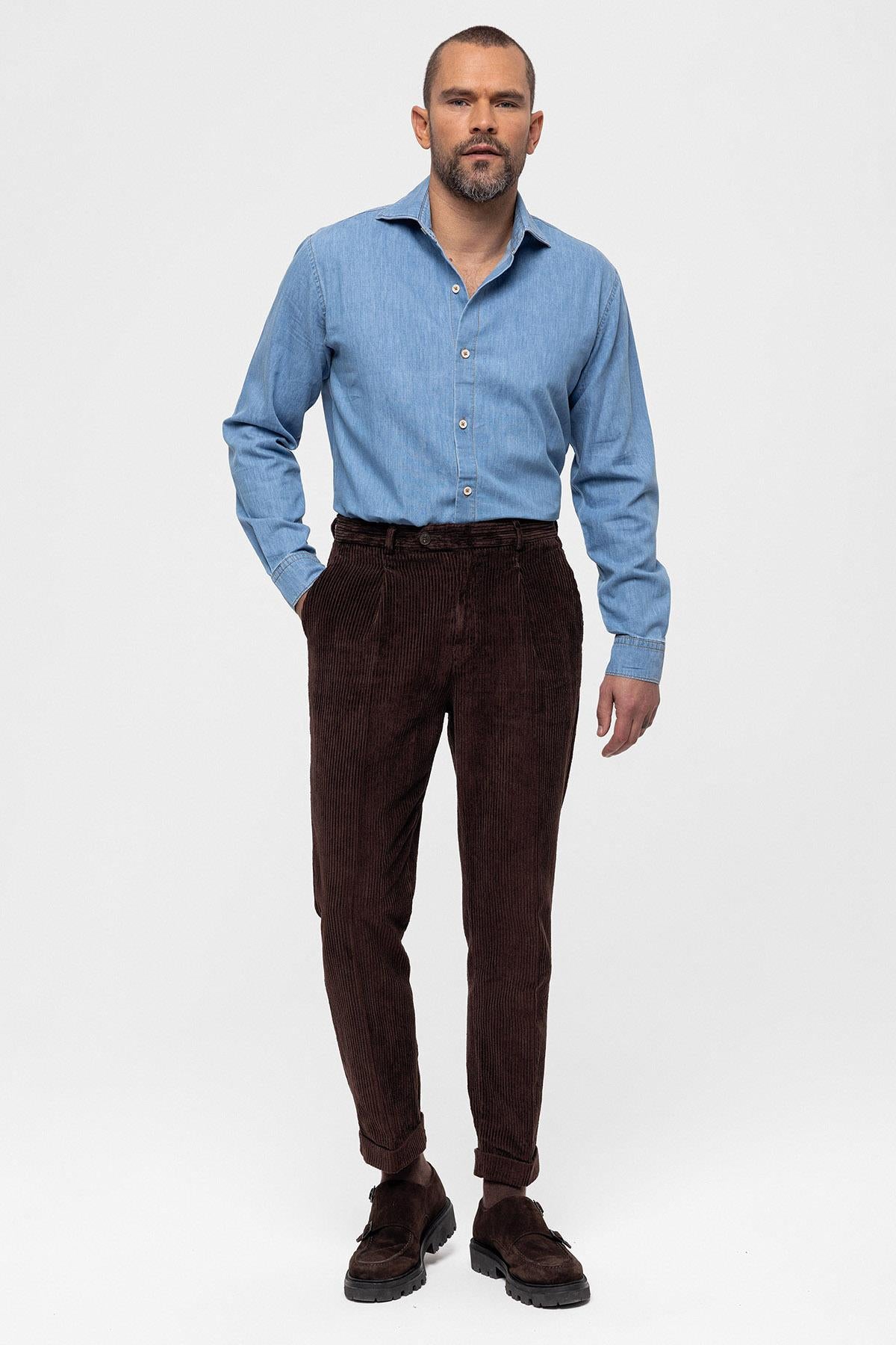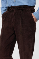 Koyu Kahve Yüksek Bel Pileli Kadife Erkek Pantolon