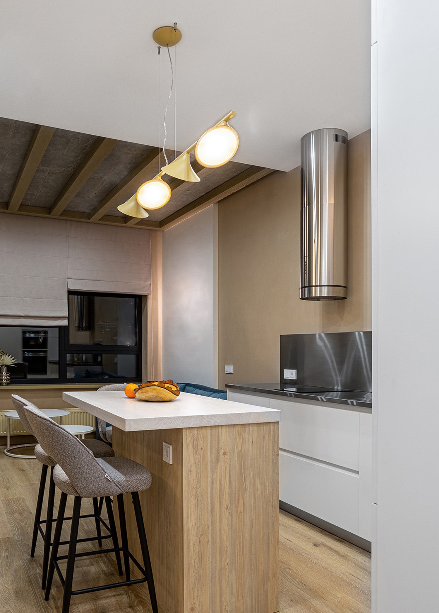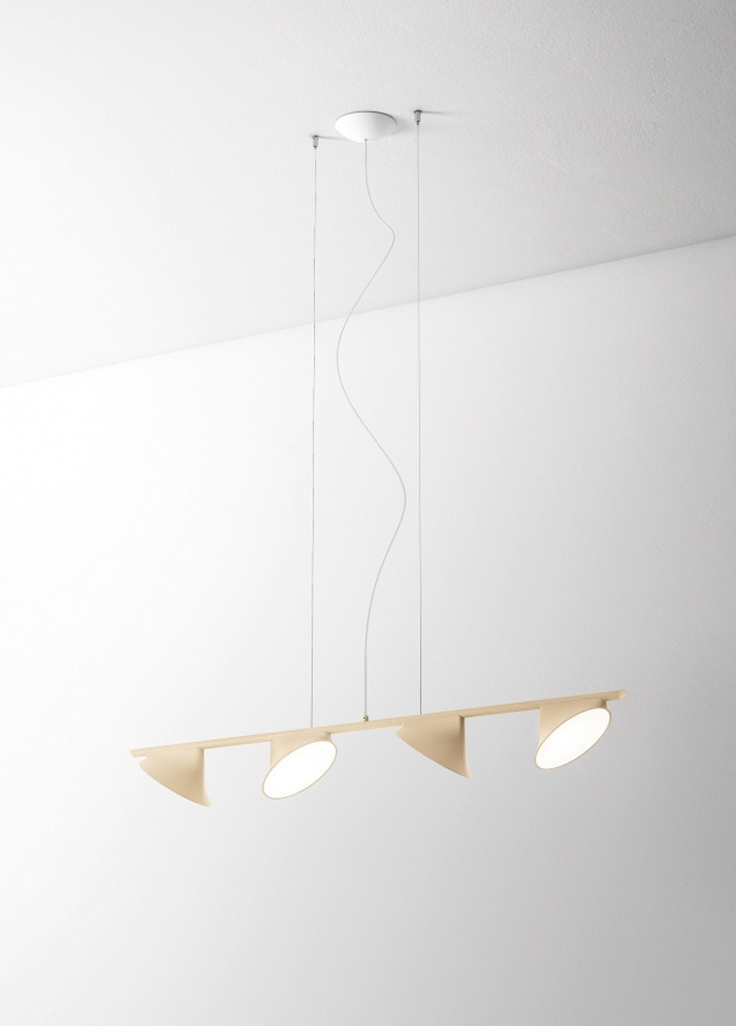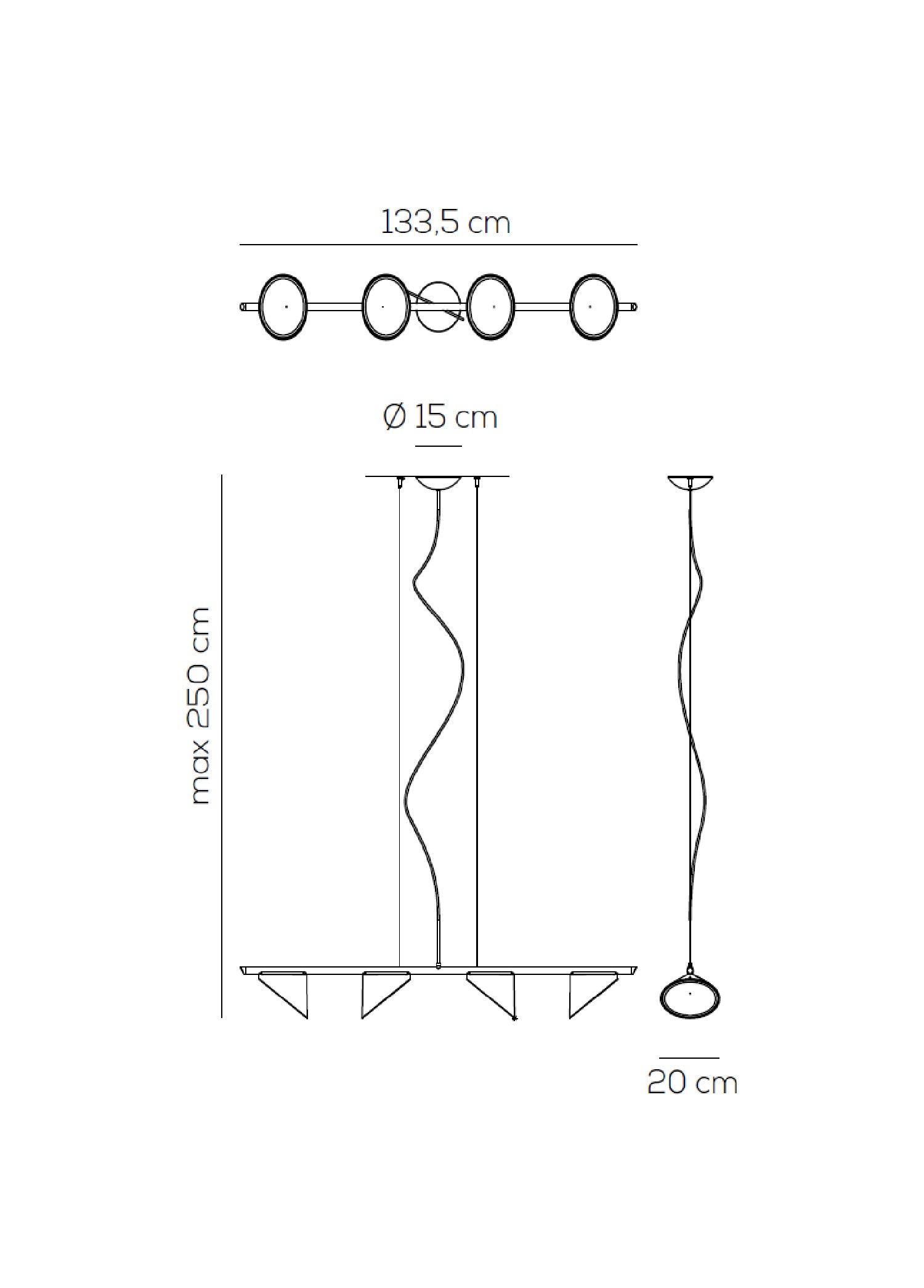 Alüminyum ve çelikten üretilen sarkıt armatür entegre dim edilebilir LED ışık kaynağına sahiptir.