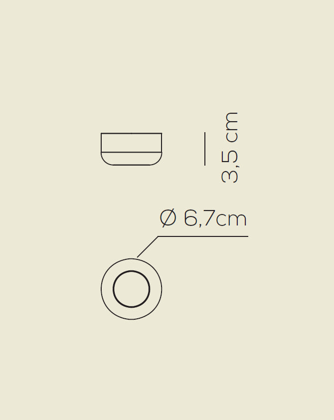 Ürün Özellikleri: Malzeme ve Gövde: Alüminyum Ölçü: L:6.7 cm H:3.5 cm Tasarımcı: Dima Loginoff Renk: Bronz Işık: Led