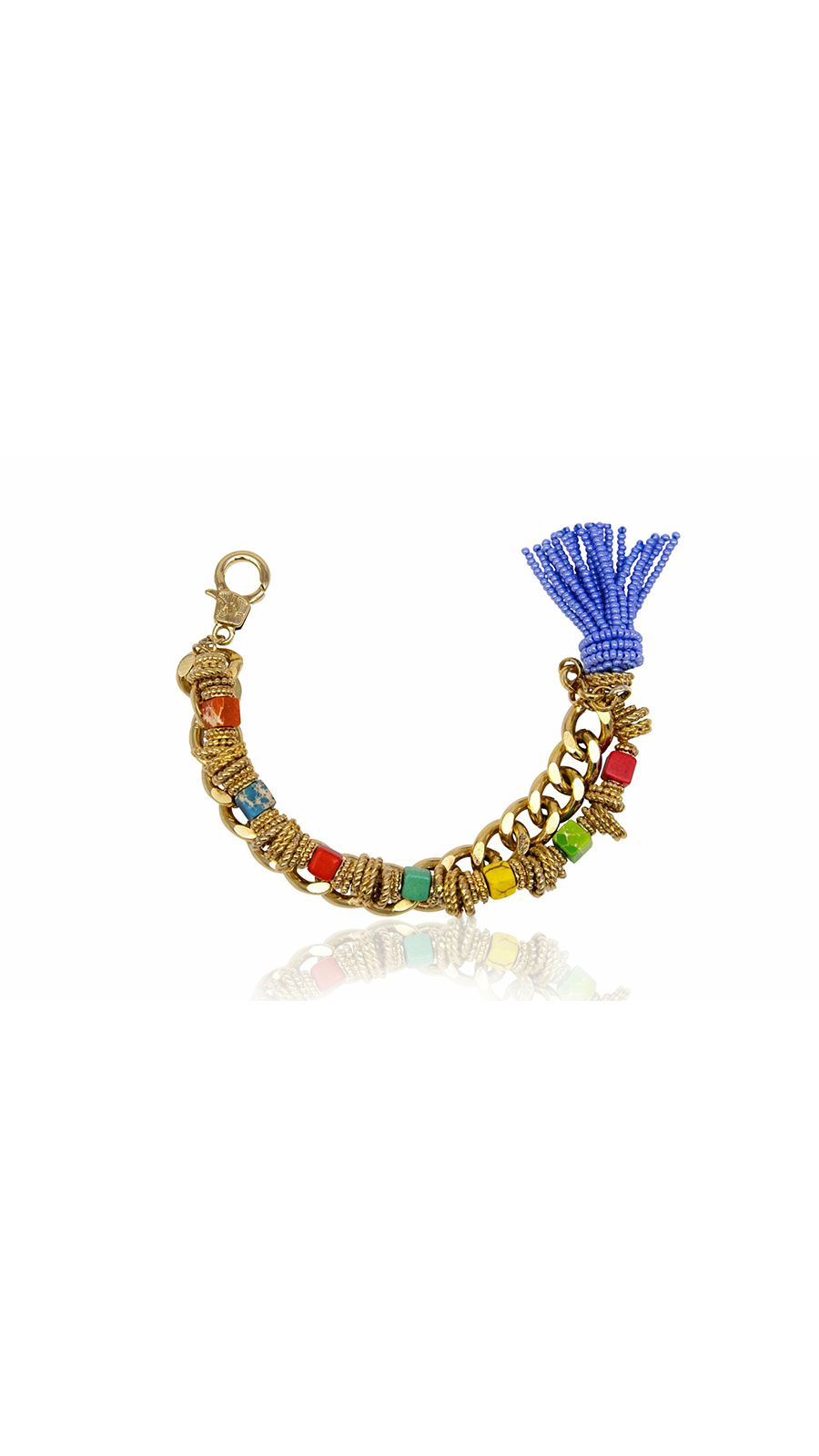 QUBIC Altın Kaplama Zincir Bileklik, özel tasarımıyla sizi hemen cezbetmeye hazır. İki katmandan oluşan bu bileklik, 22 ayar altın kaplama pirinçten yapılan ilk sıra zinciri ile sadeliğin ve şıklığın temsilcisidir. İkinci sıra, rengarenk howlite taşları ve altın kaplama pirinç halkaların muhteşem kombinasyonuyla zenginleşir ve dikkat çeker. Bileğinizin ucundaki mor hint püskülü ise, QUBIC Altın Kaplama Zincir Bileklik'e daha renkli bir hareket katıyor.
