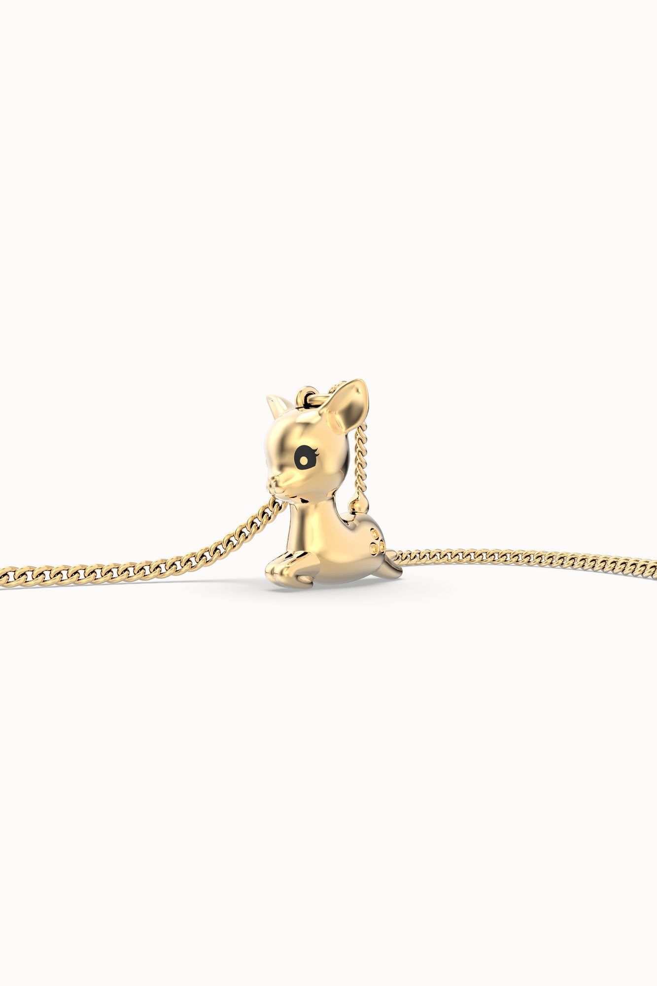 Chocli®, Belçikalı bir mücevher markasıdır. Tıpkı Belçika'nın birinci sınıf çikolataları gibi; 3D tasarımda sahip olduğu yılların deneyimini yüksek kaliteli malzemelerle birleştirerek kendinizi özdeşleştireceğiniz lezzetli ve güçlü bir koleksiyon yarattı.Koleksiyonun bu parçası tıpkı Bambi gibi tatlı ve masum !Chocli parçanız ve zinciri gerçek bir 18 ayar altın katmanla kaplanmıştır (kaplanmıştır). Bu katman kolayca solmaz ve alerjik reaksiyonlara neden olmaz, ancak takılarınızı özenle korumanız önerilir.Bakım tavsiyeleri: - Lekelenmesini ve solmasını önlemek için Chocli kolyenizi su, ter ve diğer sıvılardan uzak tutunuz.- Parfüm, saç spreyi ve sabun gibi kimyasallara maruz bırakmaktan kaçının.- Kuru ve serin bir yerde, tercihen bir mücevher kutusunda saklayın.- Yumuşak bir bez ve ılık su ile nazikçe temizleyin; ovmaktan veya sert kimyasalların kullanımından kaçının.- Chocli parçanızı spor, yüzme veya duş gibi aktiviteler sırasında takmaktan kaçının.