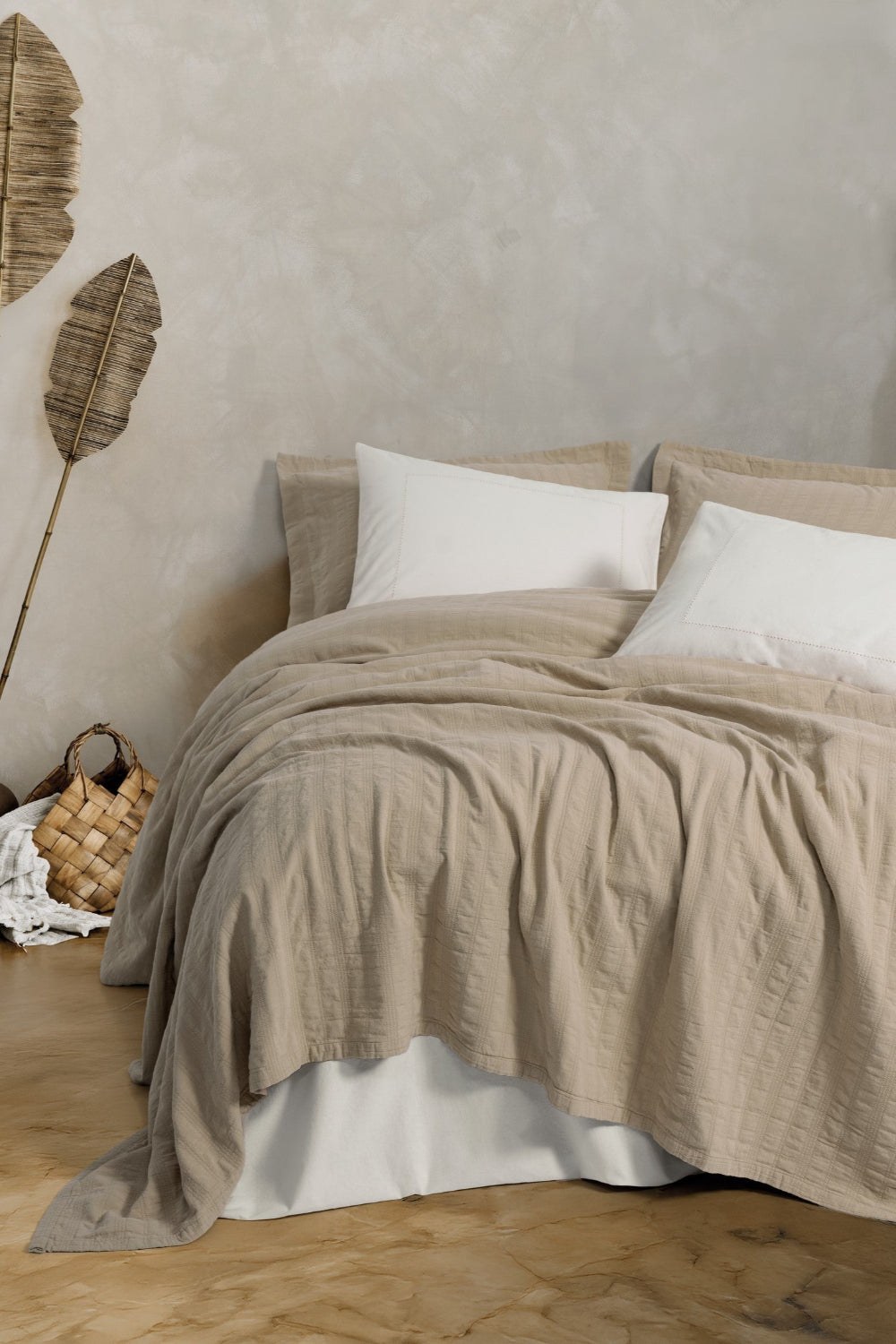 Natura Çift Kişilik Yatak Örtüsü-Pike Takımı Vilo Bej