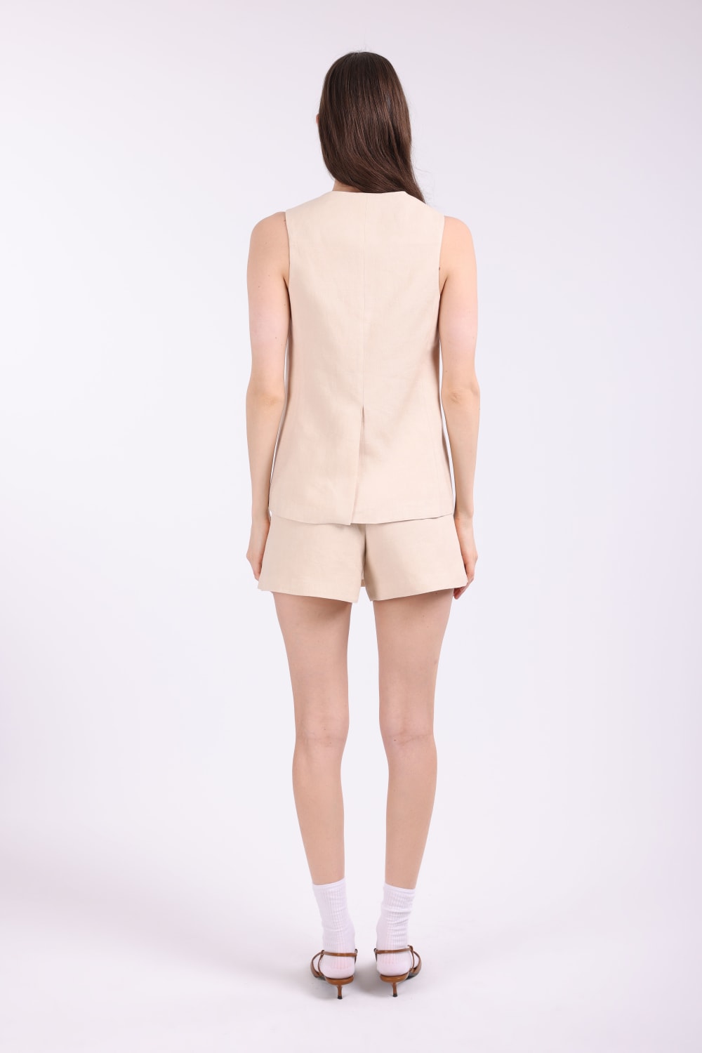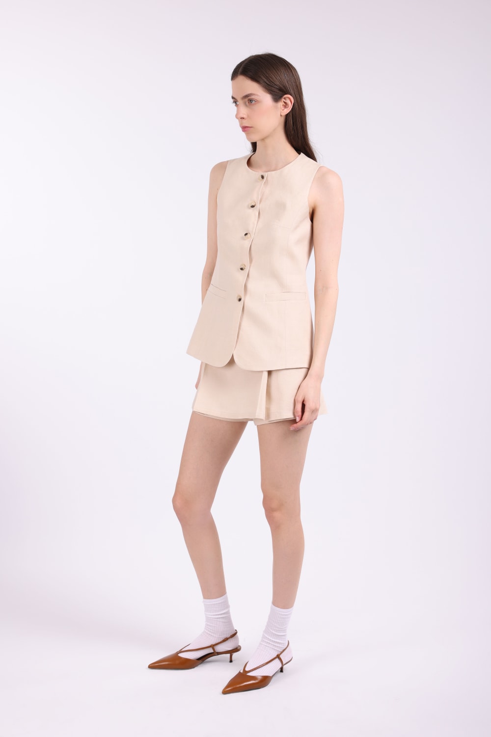 Şort etek; Keten, önü pileli, yandan gizli fermuarlı, full astarlı, iç göstermez. Şort Boy: 34 cm