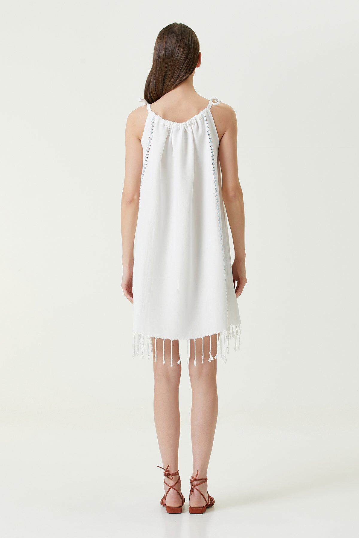 Serene Büzgülü Plaj Elbisesi Turkuaz Örgü Ajur
