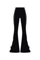 Modern tasarımıyla öne çıkan siyah pantolon yüksek kaliteli esnek örme kumaşıyla konfor ve şıklığı bir arada sunar. Yan şeritlerdeki tül büzgü detayı ve ispanyol paça kalıbı feminen bir görünüm kazandırırken, yüksek bel tasarımı modern bir siluet oluşturur. Günlük ve özel kombinler için zamansız bir seçenektir.