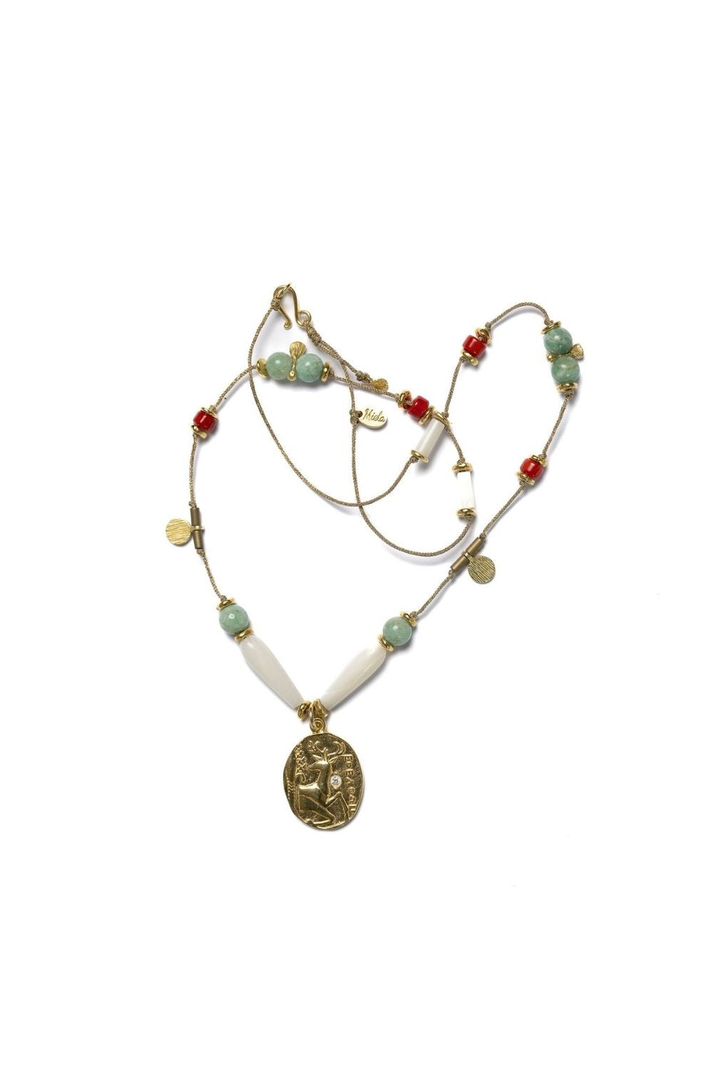 MİELA, doğanın şifalı gücünü modern yaşamın zarafetiyle birleştiren, anlam ve enerjisini üzerinize taşıyan bir marka. Doğal taşların kadim enerjilerini el yapımı sanatla buluşturan Miela tasarımları, sadece bir aksesuar değil bir yaşam biçimidir. Her tasarım kişiye özel bir anlam ve doğadan gelen saf bir enerji sunar. Miela’nın her tasarımı, sizi hem fiziksel hem de ruhsal olarak güçlendiren birer yol arkadaşıdır.Mercan, amazonit ve sedef doğal taşlar kullanılarak tasarlanmıştır.