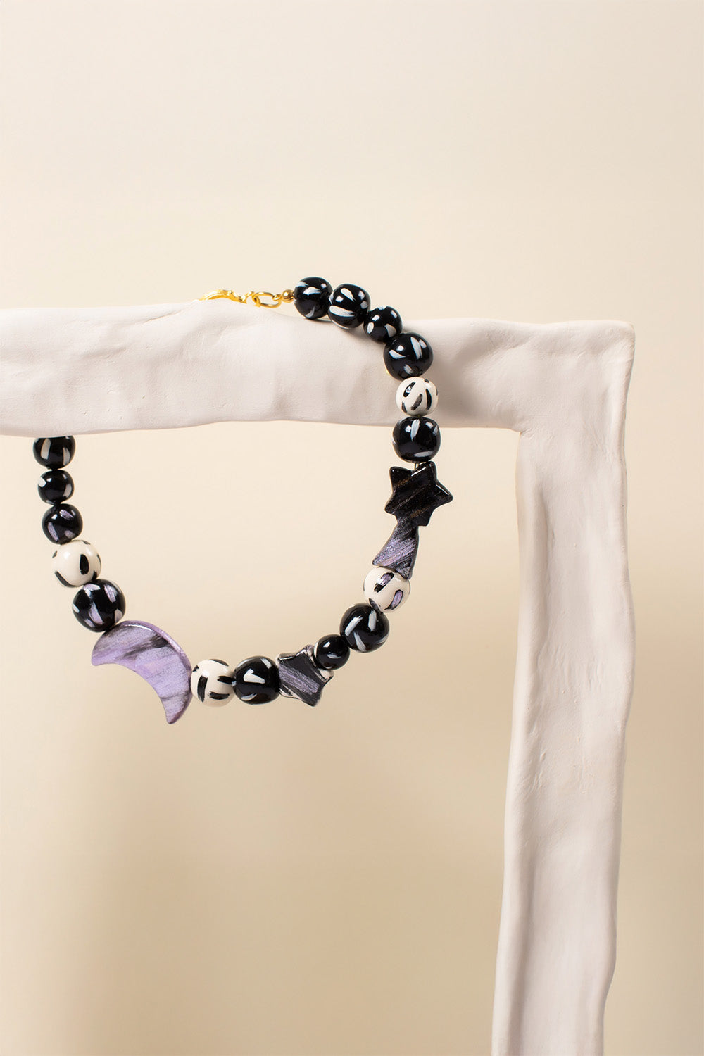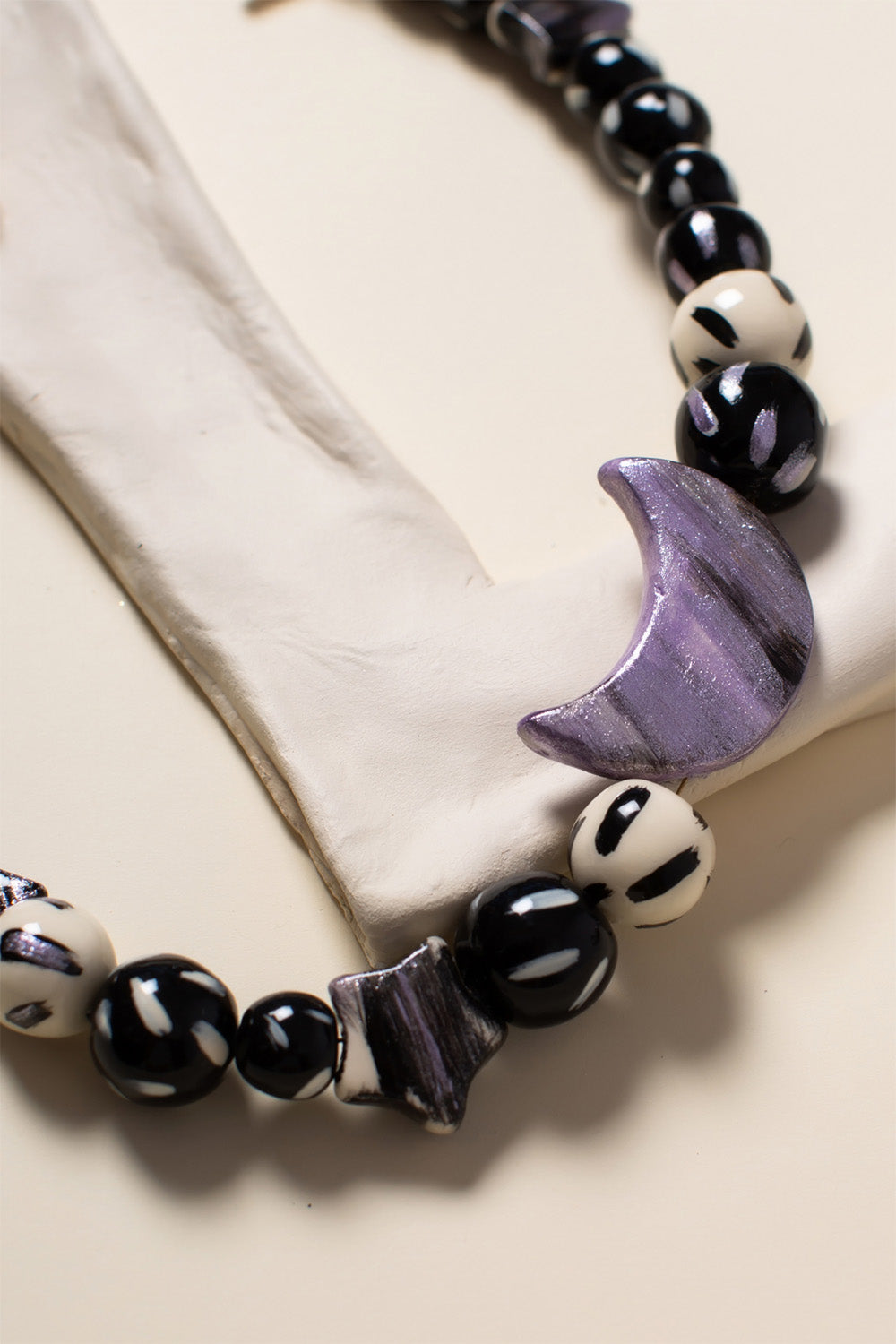 Yıldız,hilal ve top parçalar kilden elde şekillendirilmiştir, desenleri el boyamasıdır. Metal parçalar altın kaplama pirinçtir.