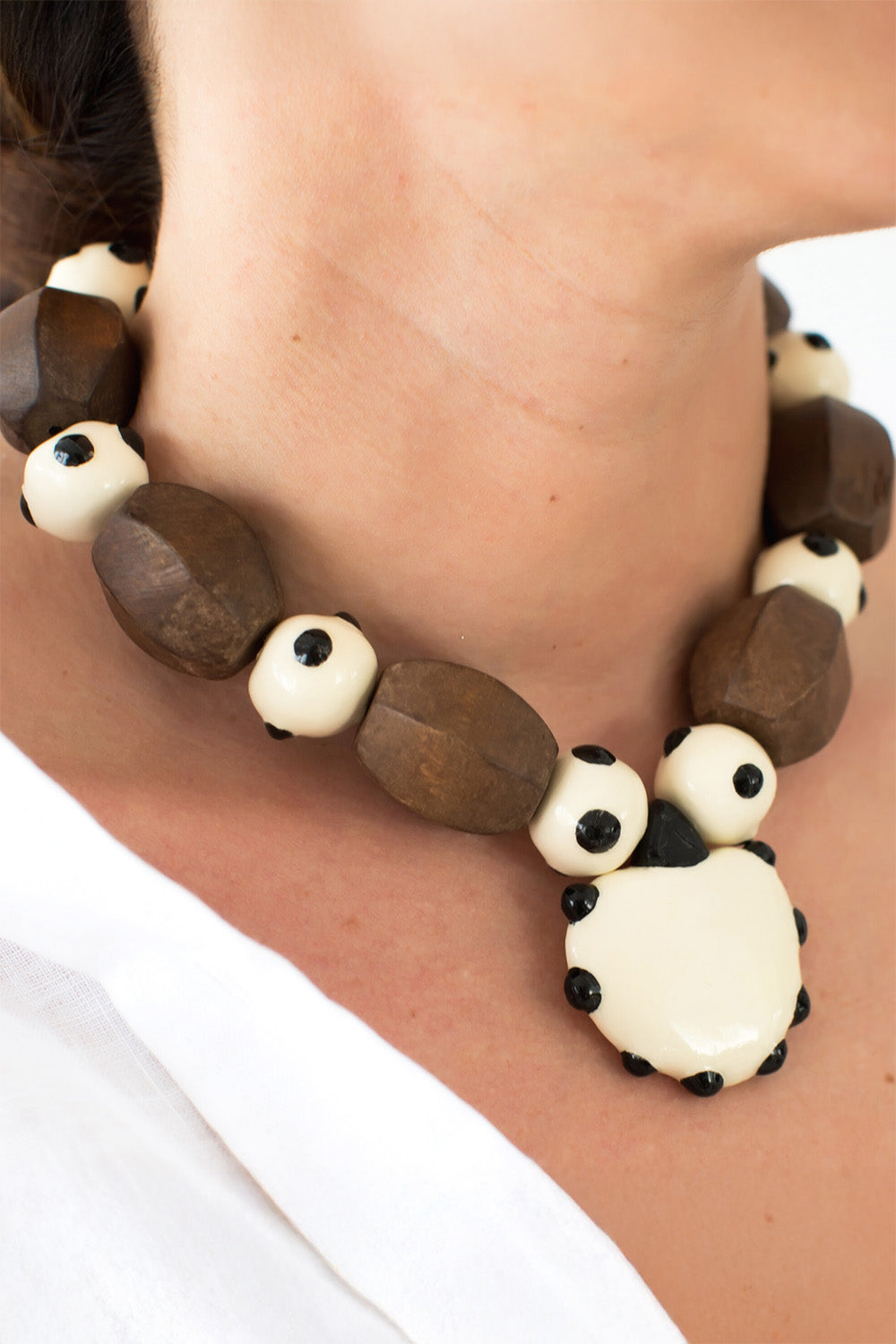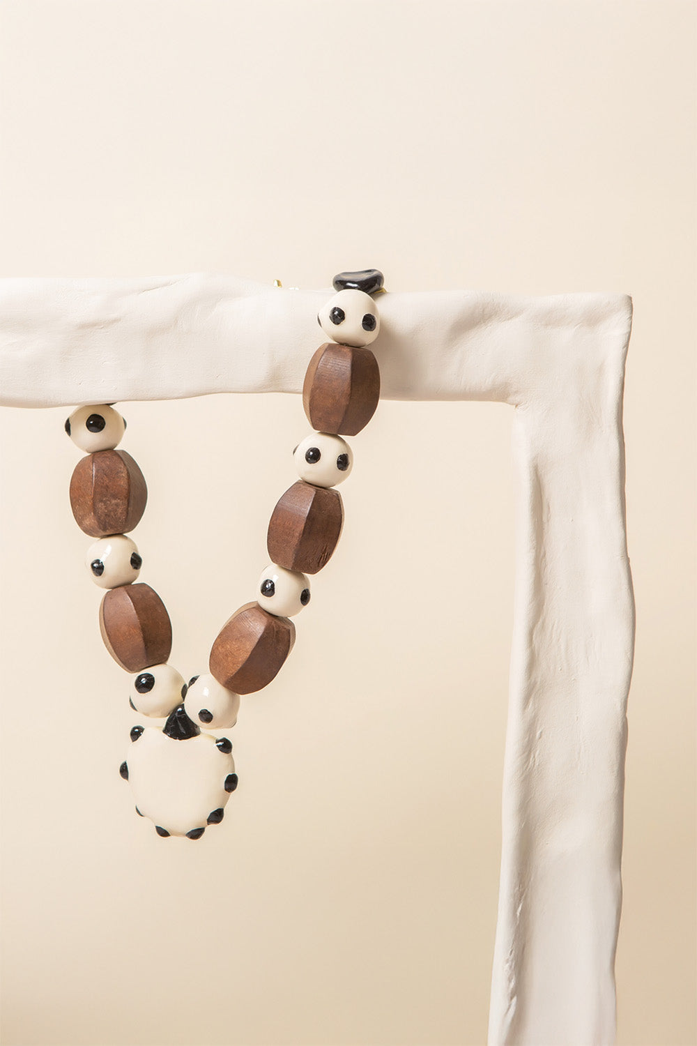 Kalp ve top parçalar kilden elde şekillendirilmiştir, desenleri el boyamasıdır. Metal parçalar altın kaplama pirinç, köşegen parçalar ham ahşaptır.