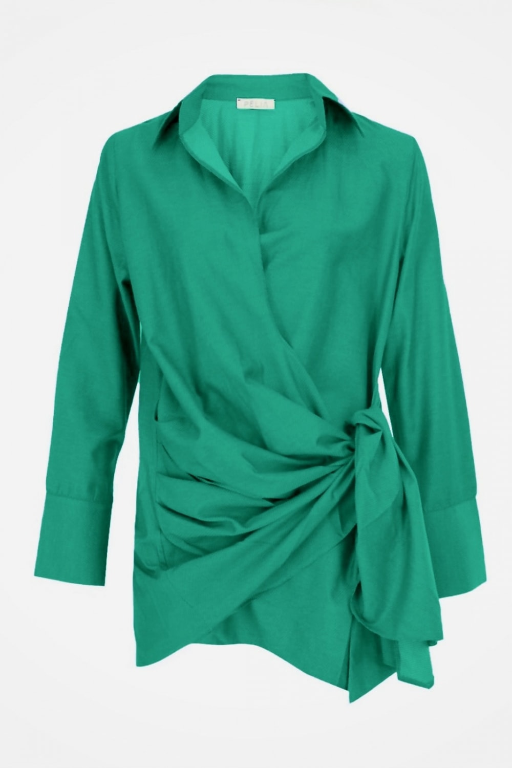 Marley Yeşil Bağlamalı Gömlek Elbise