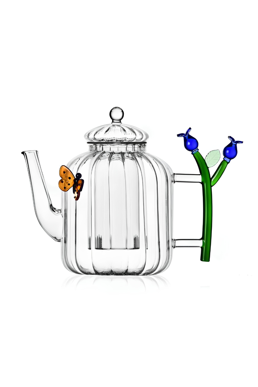 Kelebek Ve Çiçek Figürlü Cam Demlik