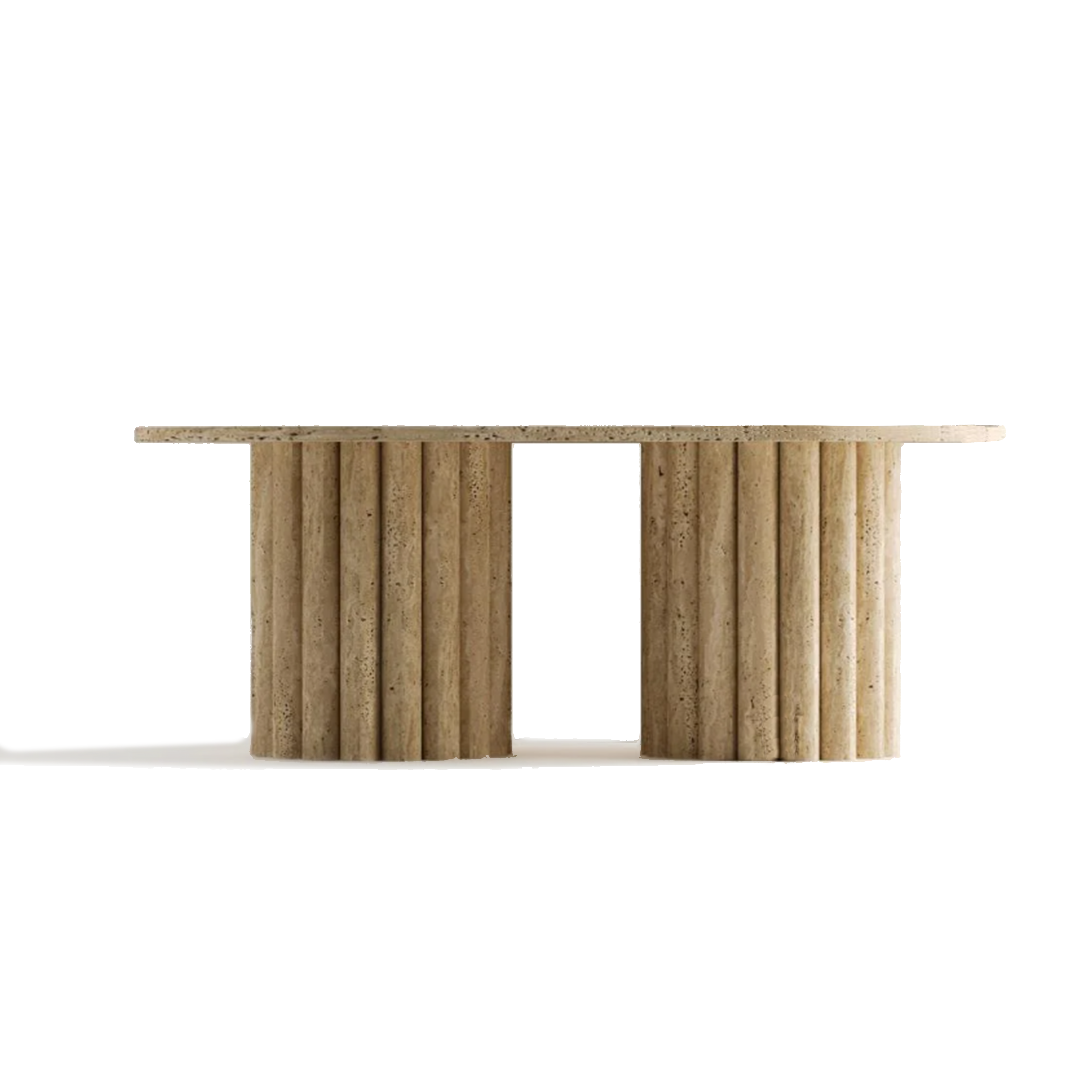 Traverten, doğal bir taş malzeme olup, her bir sehpada farklılık gösteren benzersiz renk tonları ve doğal damarları ile dikkat çekicidir. Sert ve dayanıklı yapısı sayesinde uzun yıllar boyunca kullanılabilecek bu sehpa, modern ve minimalist tasarımı ile mekanlarınıza sofistike bir hava katarlar. Özellikle doğal malzemeleri sevenler ve sade, minimalist dekorasyon tarzına sahip mekanlar için mükemmel bir seçimdir.