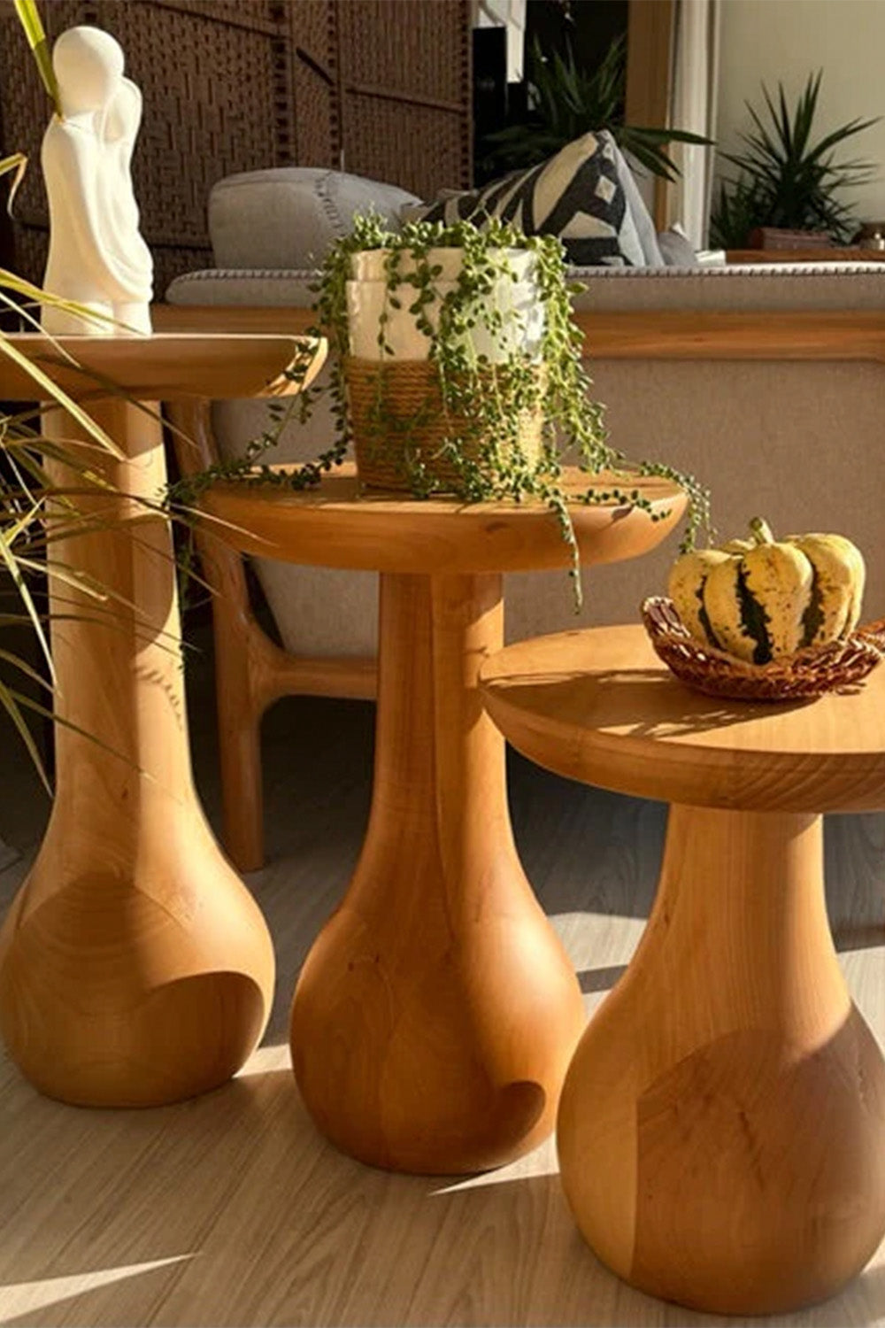Doğal masif 3'lü mantar sehpalarımız sizin için özenle ustalarımız tarafından hazırlandı.