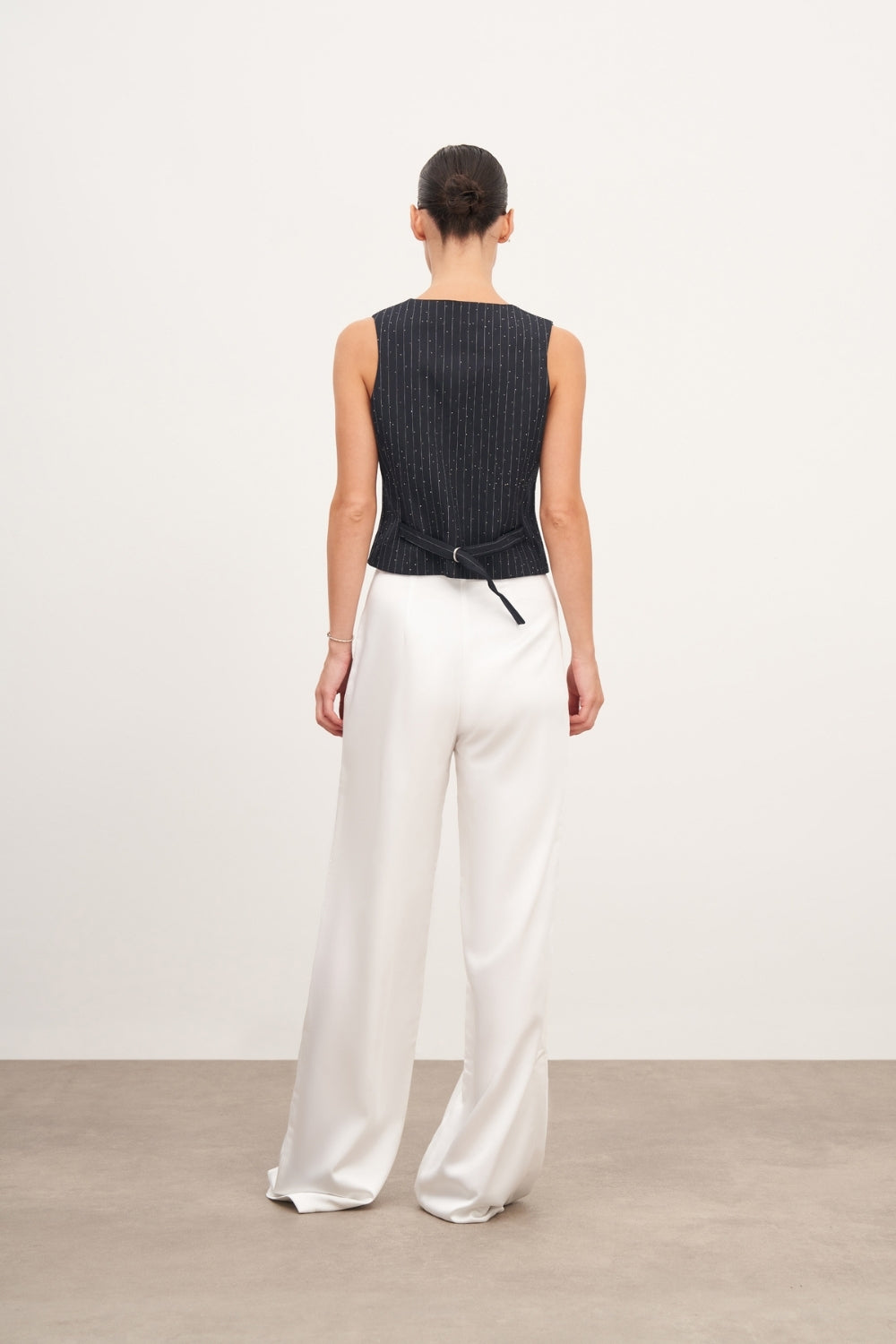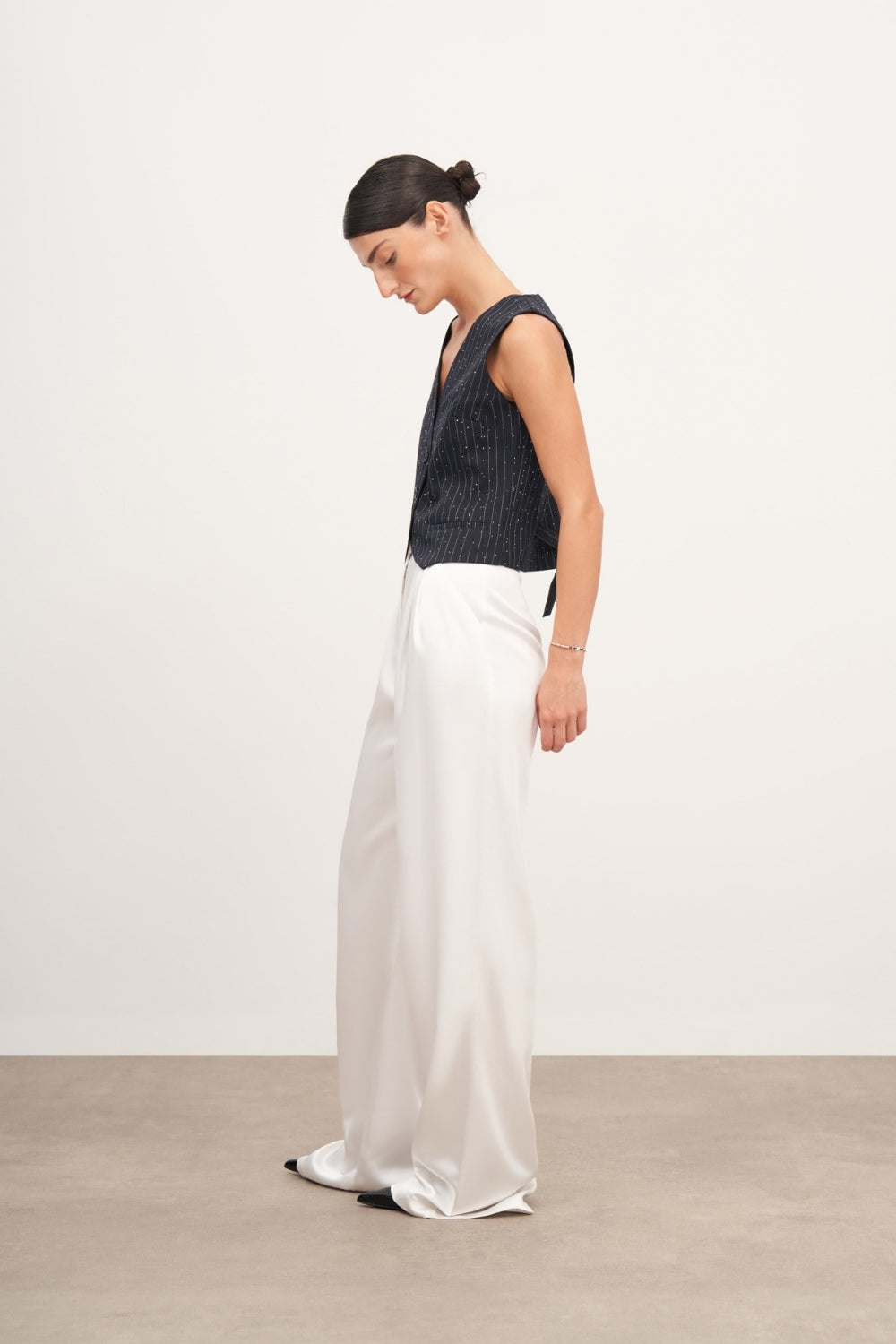 WINGCOTT Ekru Çift Pileli Saten Pantolon