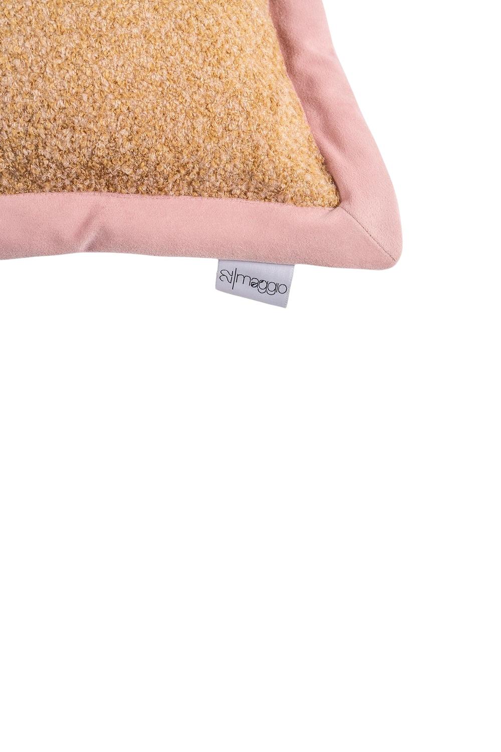 Dekoratif yastık, yaşam alanınızın ekstra sıcak ve davetkar görünmesini sağlayan bir tasarıma sahiptir. Kış ve şömine dekorasyonu için ideal. İpeksi şampanya pembesi kadife ve özel dokuma bukle/peluş kumaşın uyumu göze çarpıyor. İpeksi kadife etrafı kalın bukle bordürlerle süslenmiştir. Dekoratif yastık gizli fermuara sahip ve içi dolu olarak gönderilmektedir.
