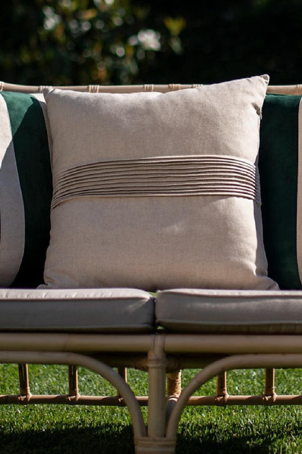 Lino Bej Keten Sade Pili Detaylı Dekoratif Yastık 50x50 Cm
