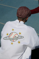 Gabardin kumaştan üretilen baseball-gezegen tasarımlı t-shirt oversize modeldir. Önünde büyük cep detay bulunur.