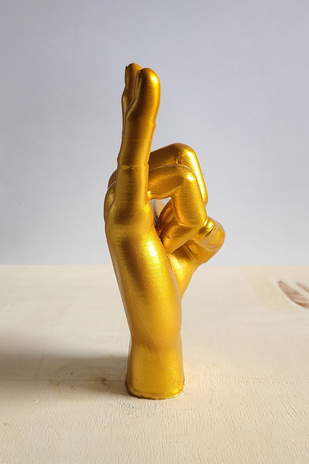 "Rock On" el heykeli, güçlü duruşuyla her ortamda dikkat çeker. PLA biyopolimer malzemeden 3D baskı tekniğiyle üretilmiş, ardından özenli el işçiliğiyle son hali verilmiştir.
