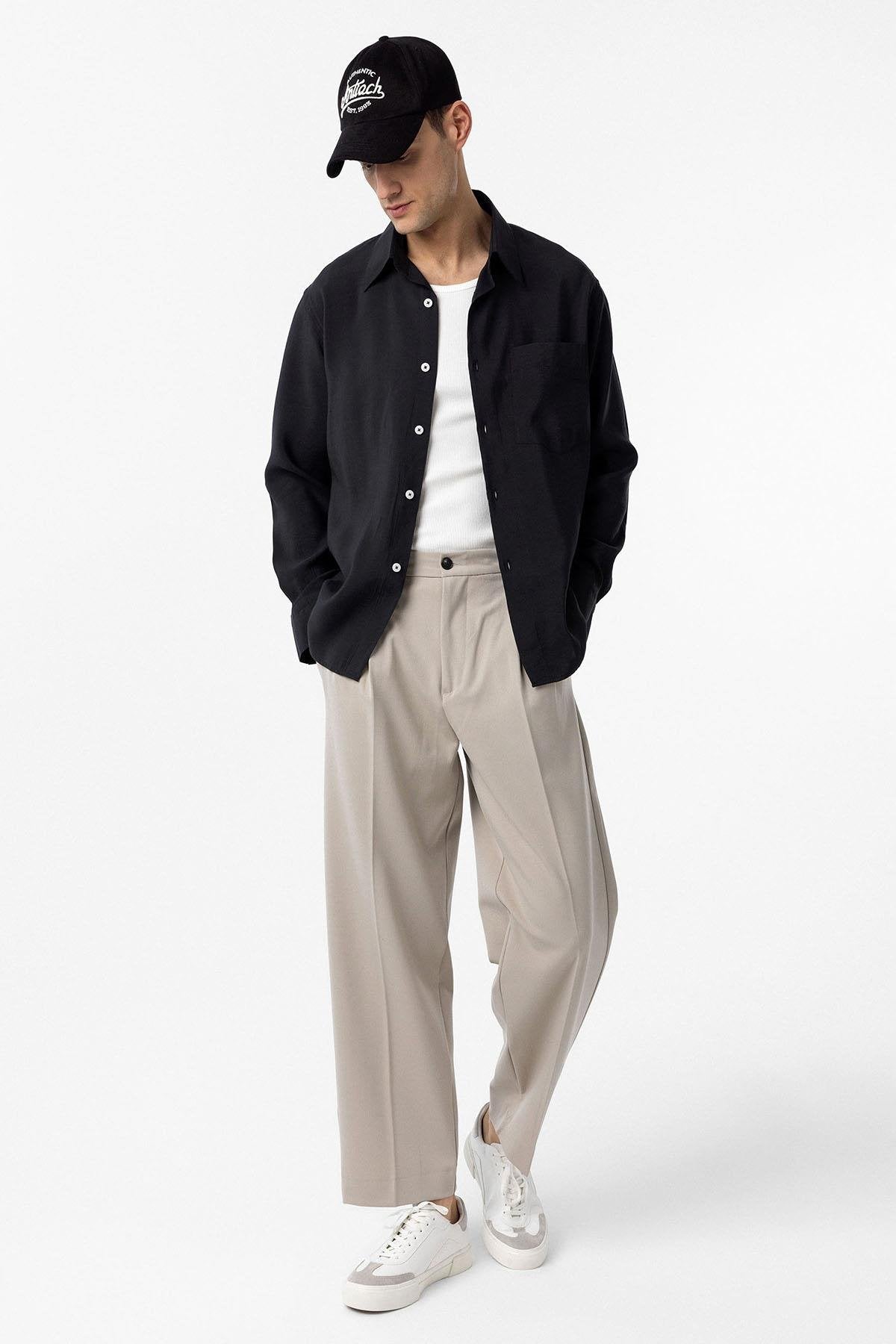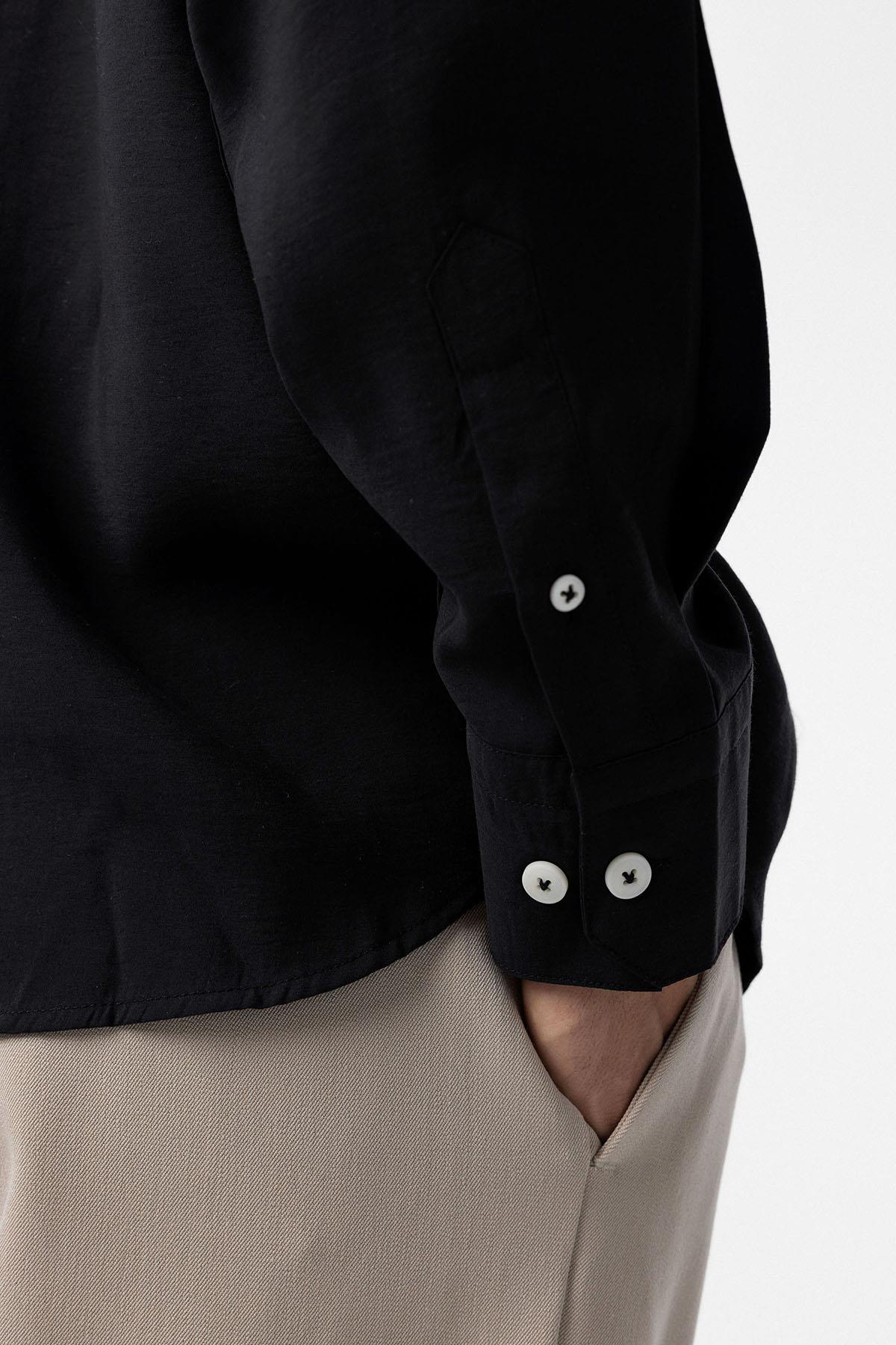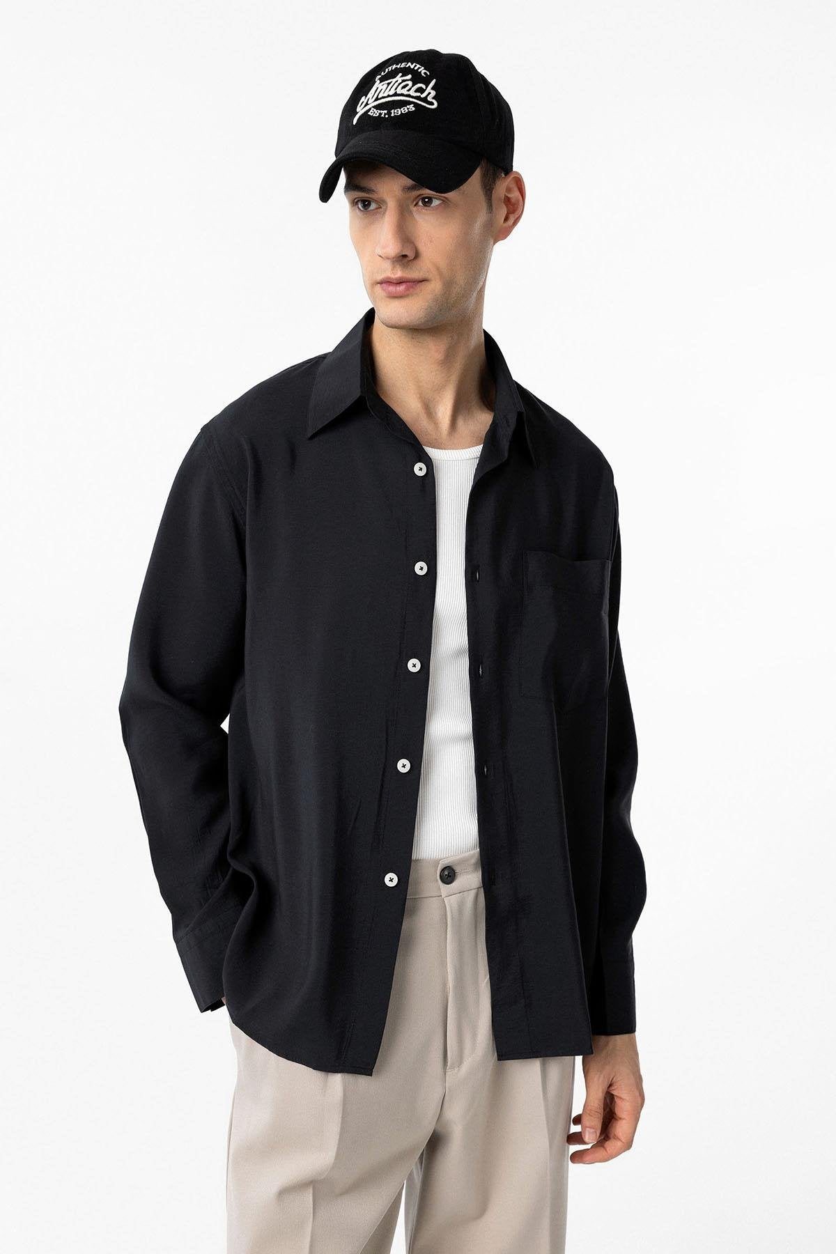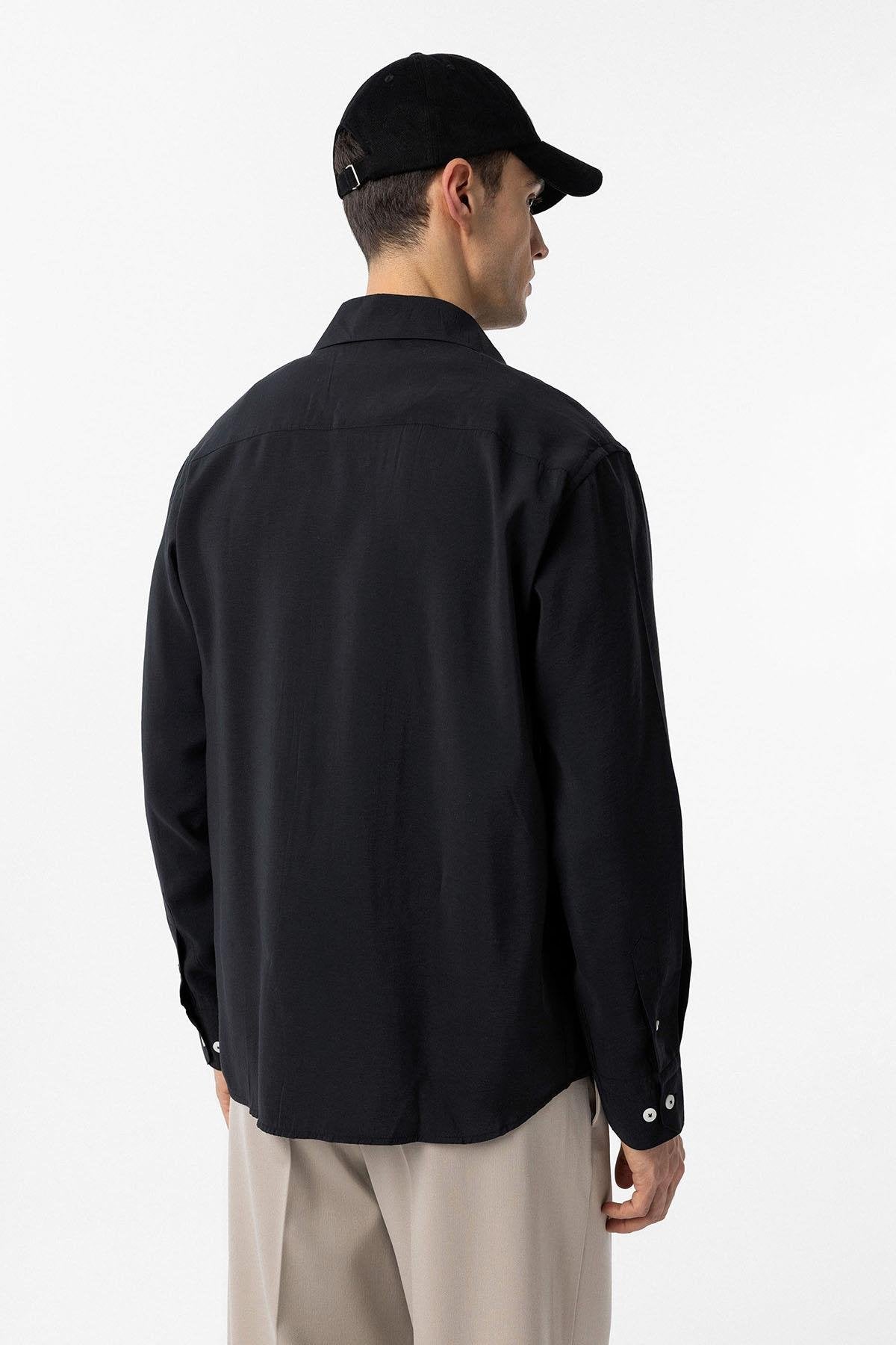 Siyah Modal Kumaş Relax Fit Erkek Gömlek
