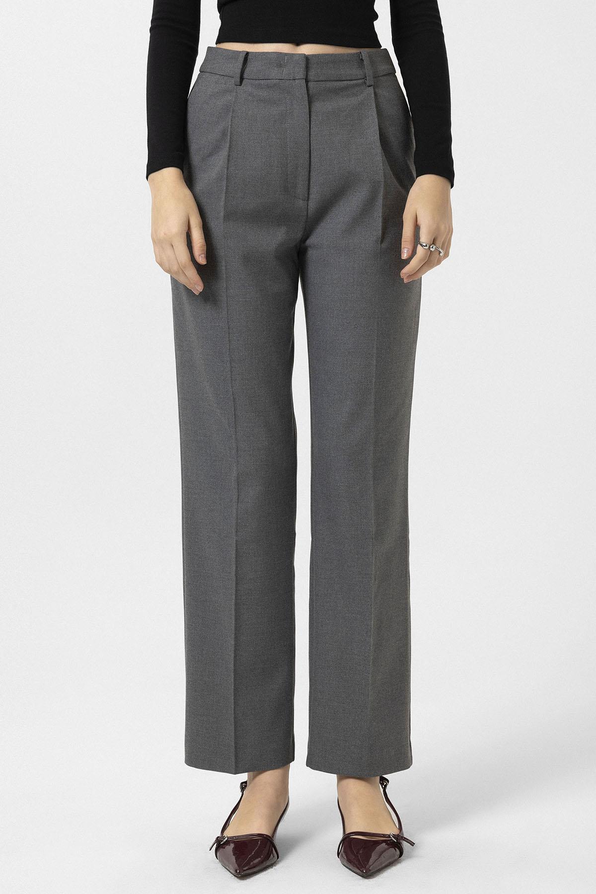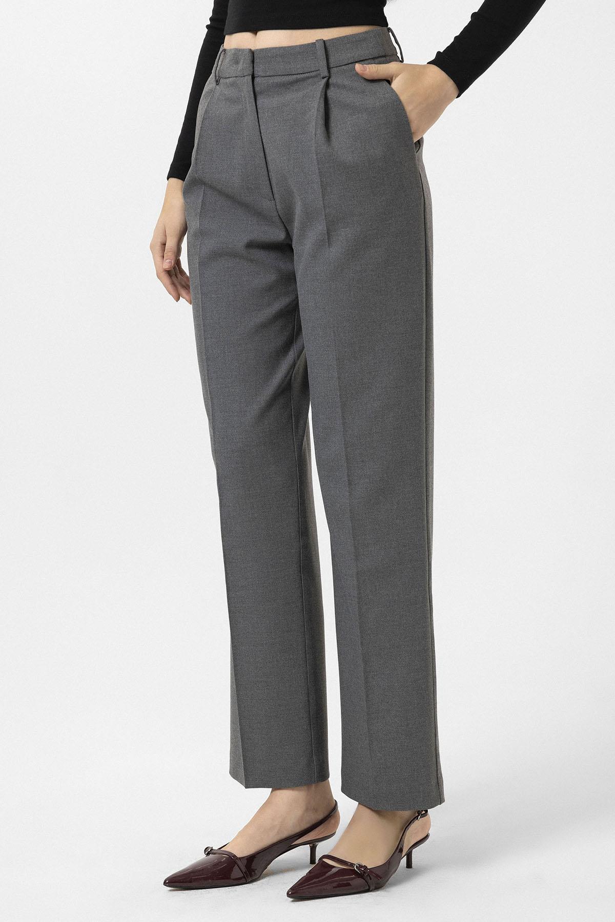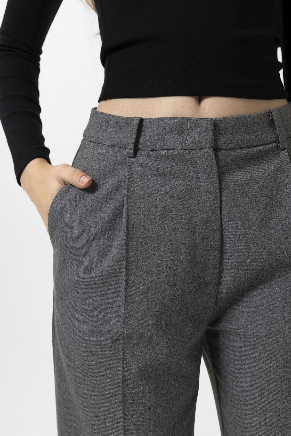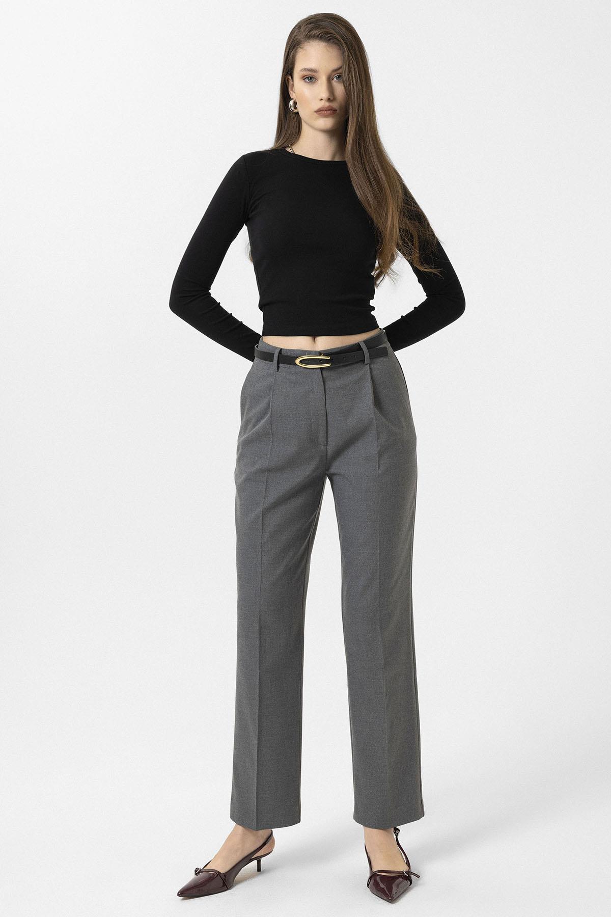 Gri Kadın Yüksek Bel Pileli Pantolon