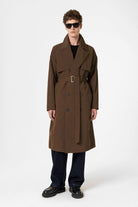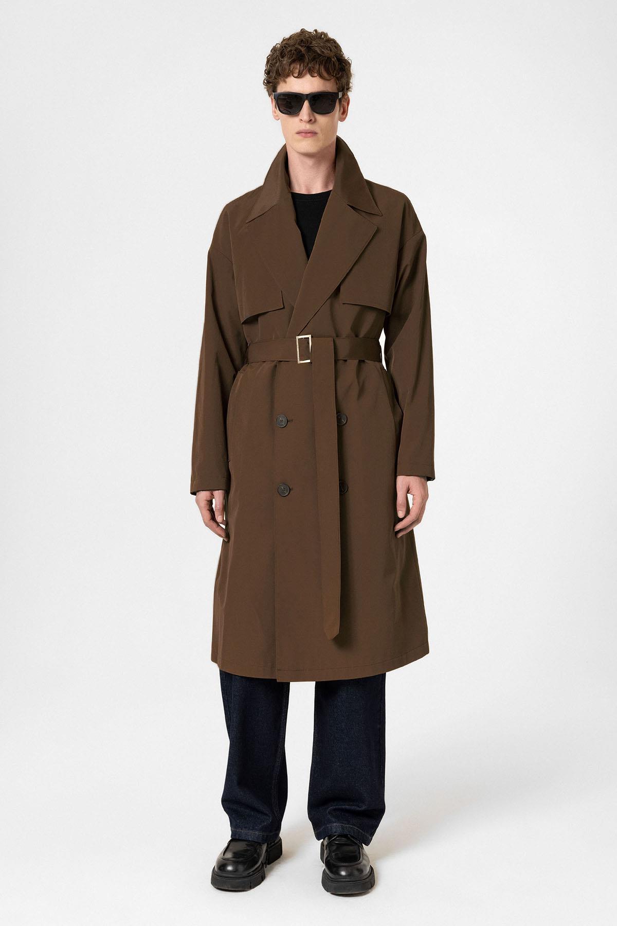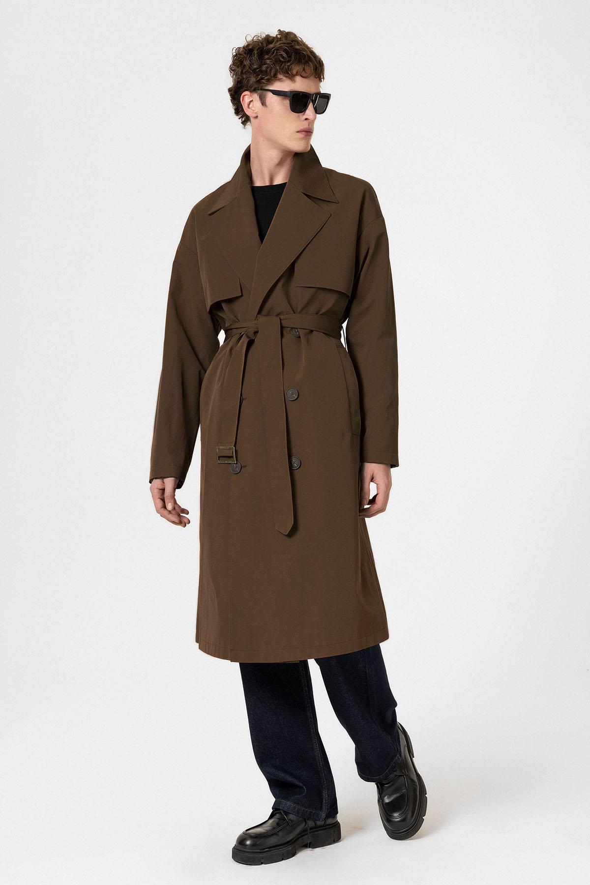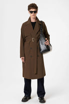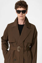 Koyu Kahve Kruvaze Kapama Kemerli Trençkot