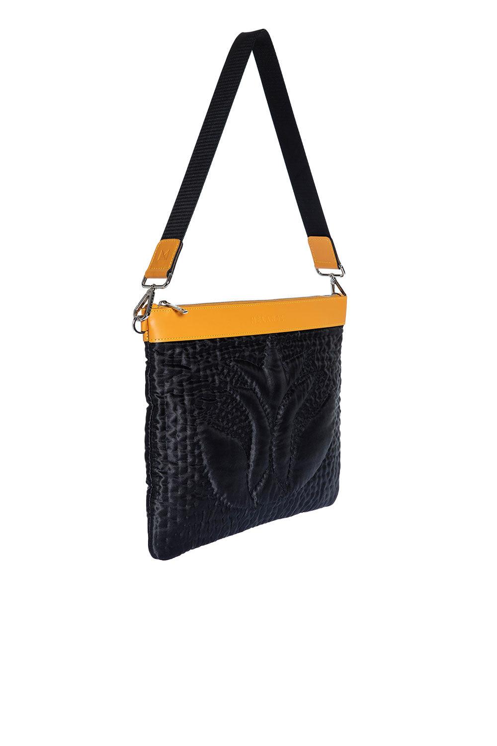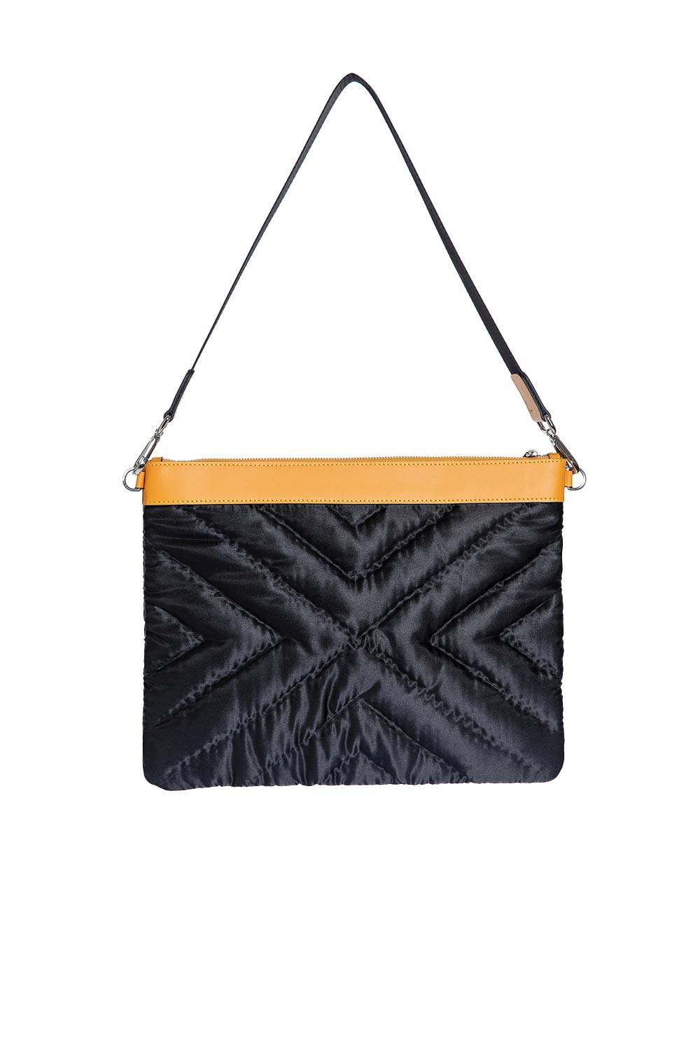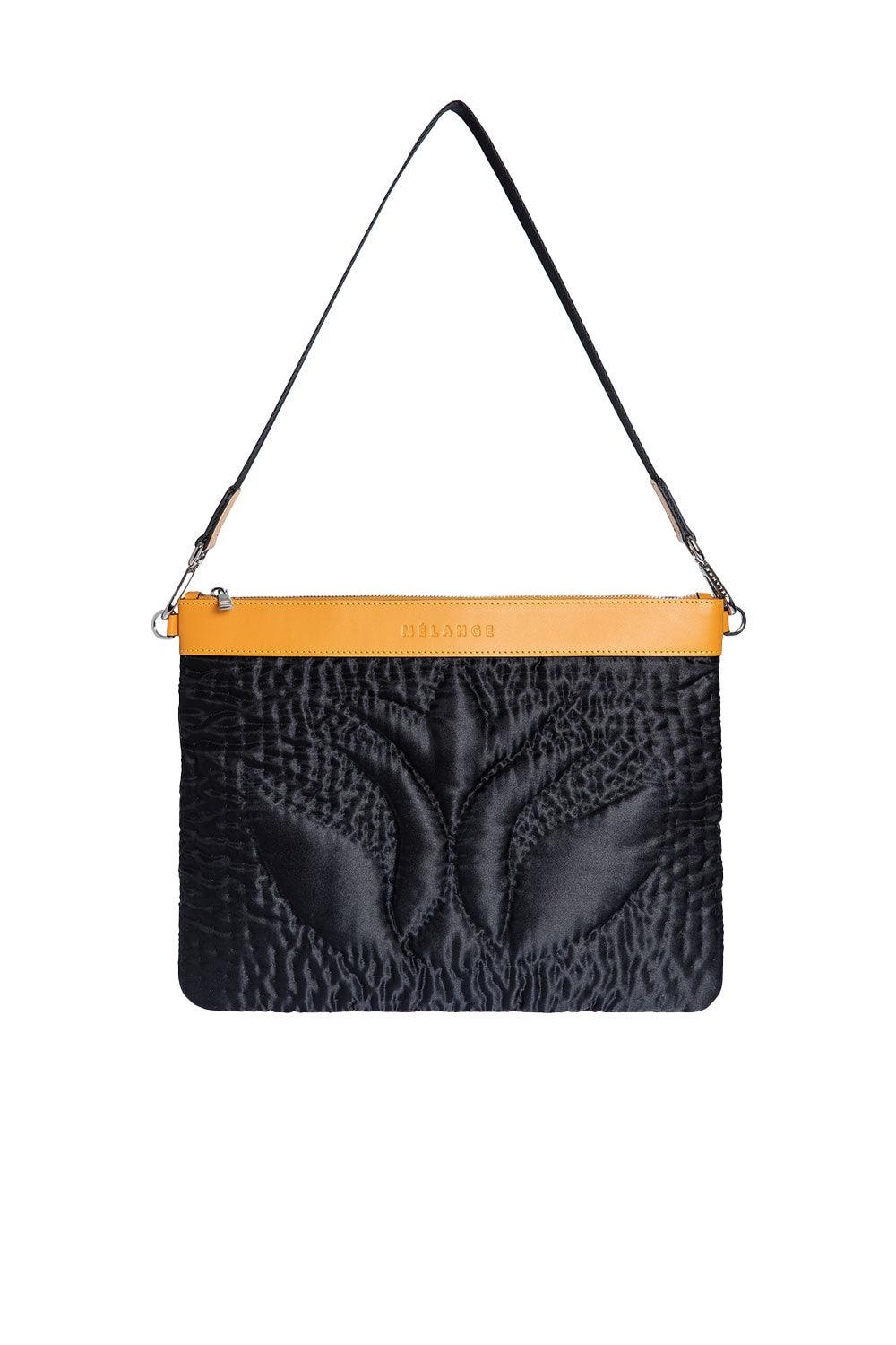 Şükran İpek Saten Büyük Omuz Çantası Siyah Turuncu