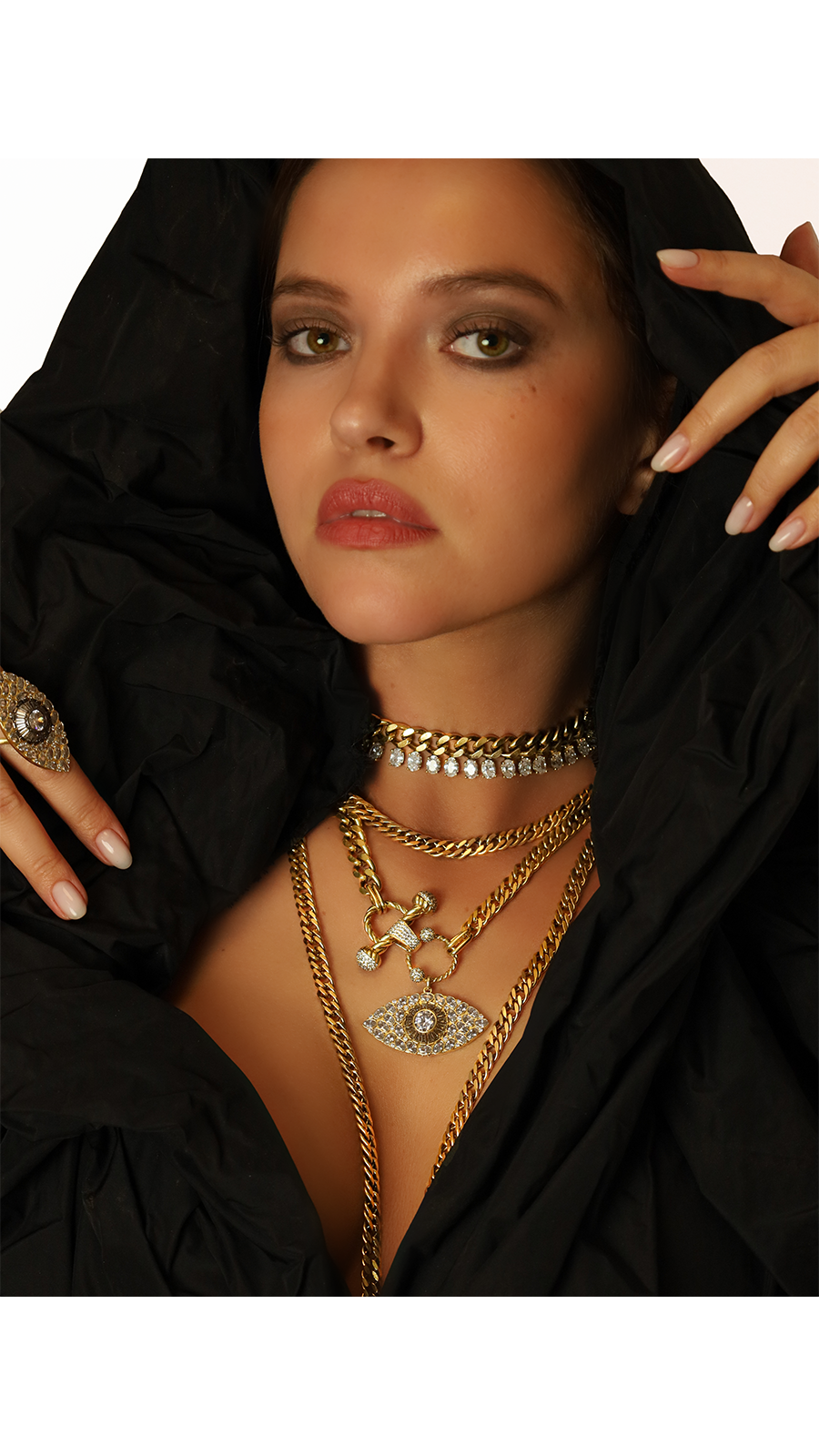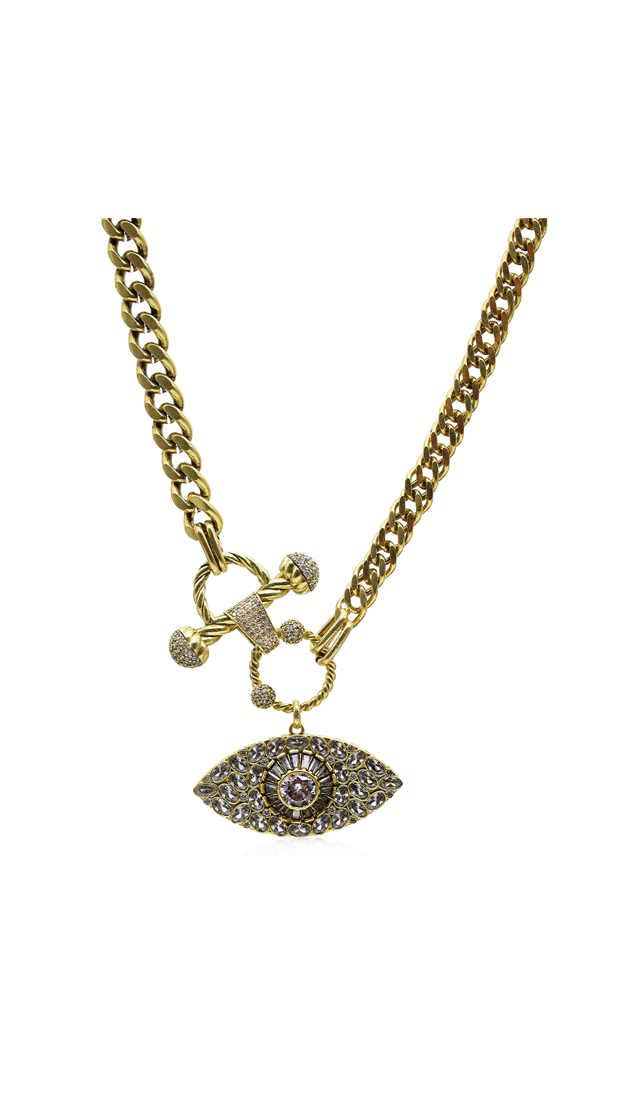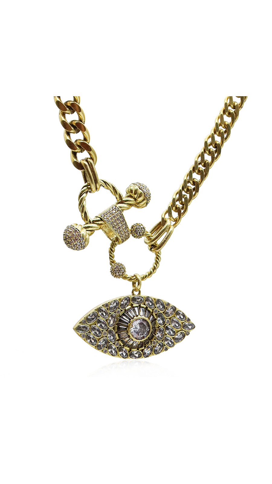 AFRODIT Altın Kaplama Göz Kolye'nin ucunda bulunan göz sembolü, altın kaplama pirinç üzerine asimetrik bir şekilde yerleştirilmiş kristal taşlarla süslenmiş. Bu özel detaylar, sembolün alışılmış düzenin dışına çıkarak kendine özgü bir parlaklık yaratmasını sağlıyor. Her taşın rastgele yerleştirilmesi, AFRODIT Altın Kaplama Göz Kolye sıradanlıktan uzak, her anınıza farklı bir ışıltı katan karakterini ortaya koyuyor.