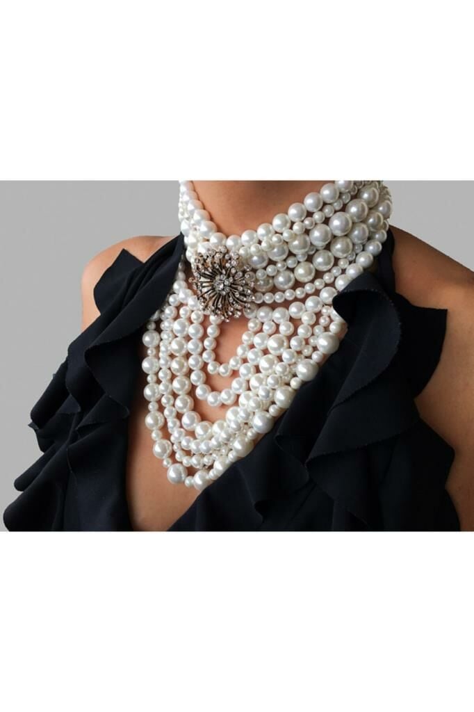 Bonde İnci Kolye, zarif ve sofistike bir tasarıma sahiptir. Boynu sıkıca saran yedi sıra farklı büyüklüklerdeki incilerle başlar ve göğüs bölümüne doğru altı sıra daha inci eklenerek devam eder. Bu muhteşem inci sıralarının ortasında, dikkat çeken detay olarak bronzdan yapılmış çiçek sembolü bulunmaktadır. Bonde İnci Kolye, hem modern hem de klasik tarza sahip olanlar için mükemmel bir seçenektir. Özel anlarda şıklığı tamamlayacak bu parça, takı koleksiyonunuzun vazgeçilmez bir üyesi olmaya adaydır.