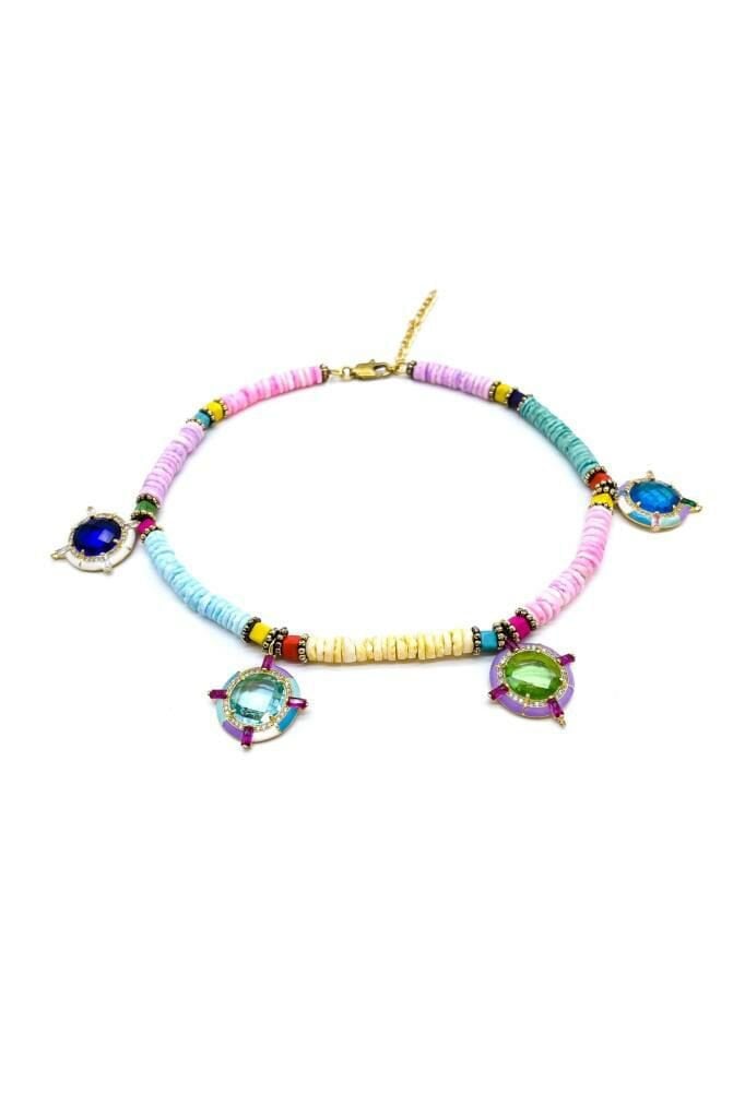 Carvalse Doğal Taş Kolye, yazın enerjisini ve canlılığını yansıtan renkleriyle adeta bir gökkuşağını andırır. Farklı renklerdeki sedef taşlarının harmonik sıralanışı, her bir taşın doğal güzelliğini ön plana çıkarır. Aralıklı olarak eklenen renkli atom taşları şeklindeki madalyonlar, kolyeye hem derinlik hem de hareket katarken, 22 ayar altın kaplama pirinç halkalar bu birleşimi zarif bir şekilde tamamlar. Carvalse Doğal Taş Kolye'nin bu renk cümbüşü, özellikle yaz aylarında enerjinizi ve tarzınızı yansıtarak sizi ön plana çıkarır.