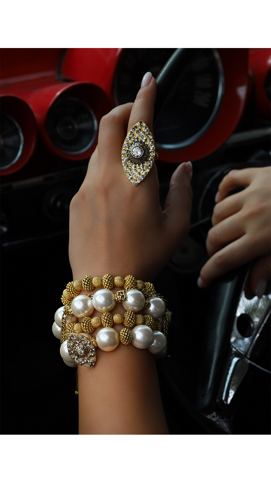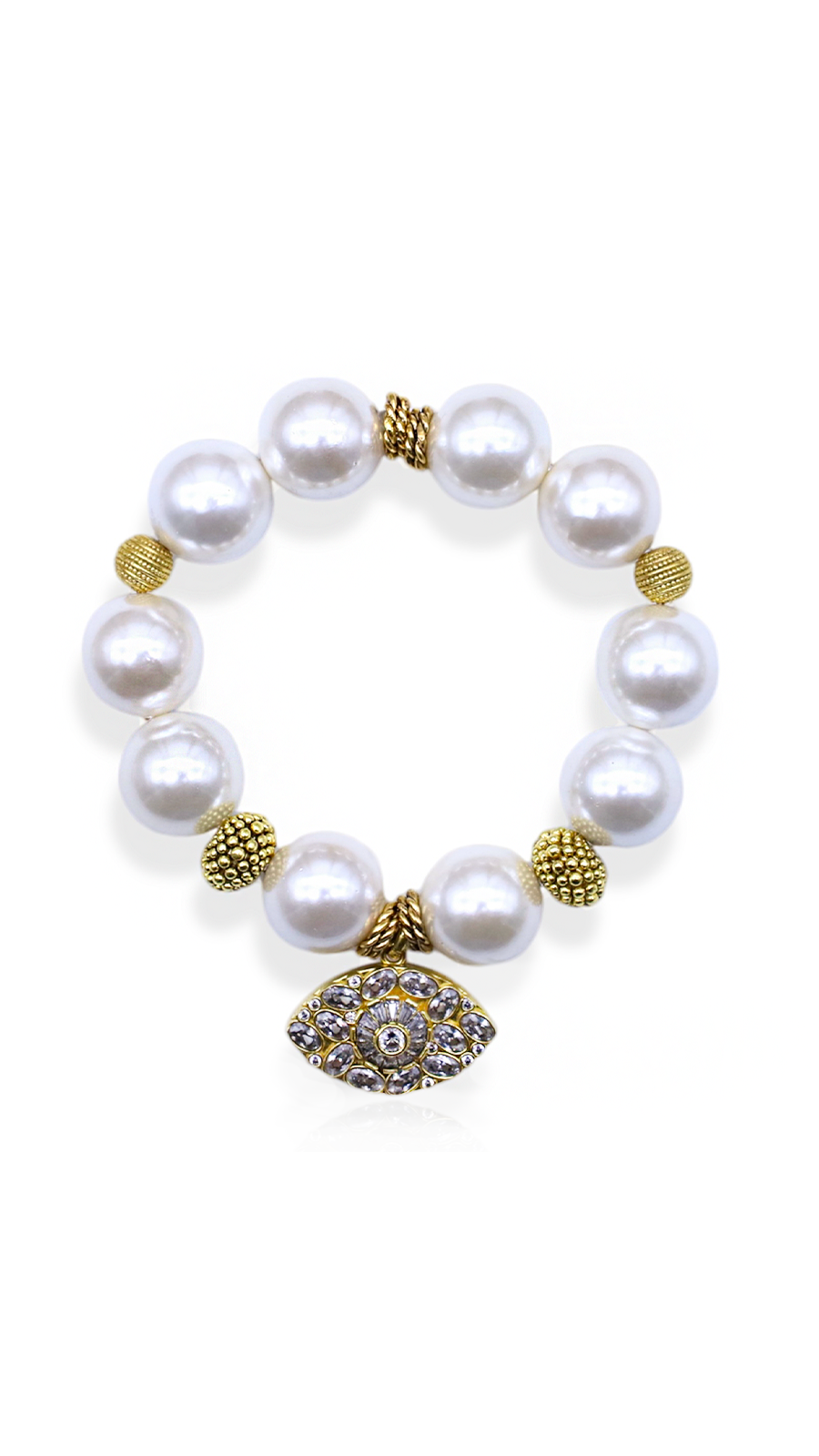 Bilekliğin merkezinde yer alan Bayemeyc’in özgün tasarımı olan göz sembolü, güçlü bir koruma ve ruhsal denge unsuru olarak sarkıyor. Sembolün üzerindeki kristallerin ışıltısı, bilekliği her hareketinizde farklı bir parıltıyla süslüyor. COTHROM İnci Bileklik, enerjiyi dengeleyerek sizi koruma altına alırken, stilinize hem zarafet hem de derinlik katıyor.COTHROM İnci Bileklik, günlük kombinlere zarif bir dokunuş katarken, özel anlarınızda da stilinizin göz alıcı tamamlayıcısı olacak. Bu bileklikle hem şıklığı hem de güçlü bir anlamı bileğinizde taşıyacaksınız.