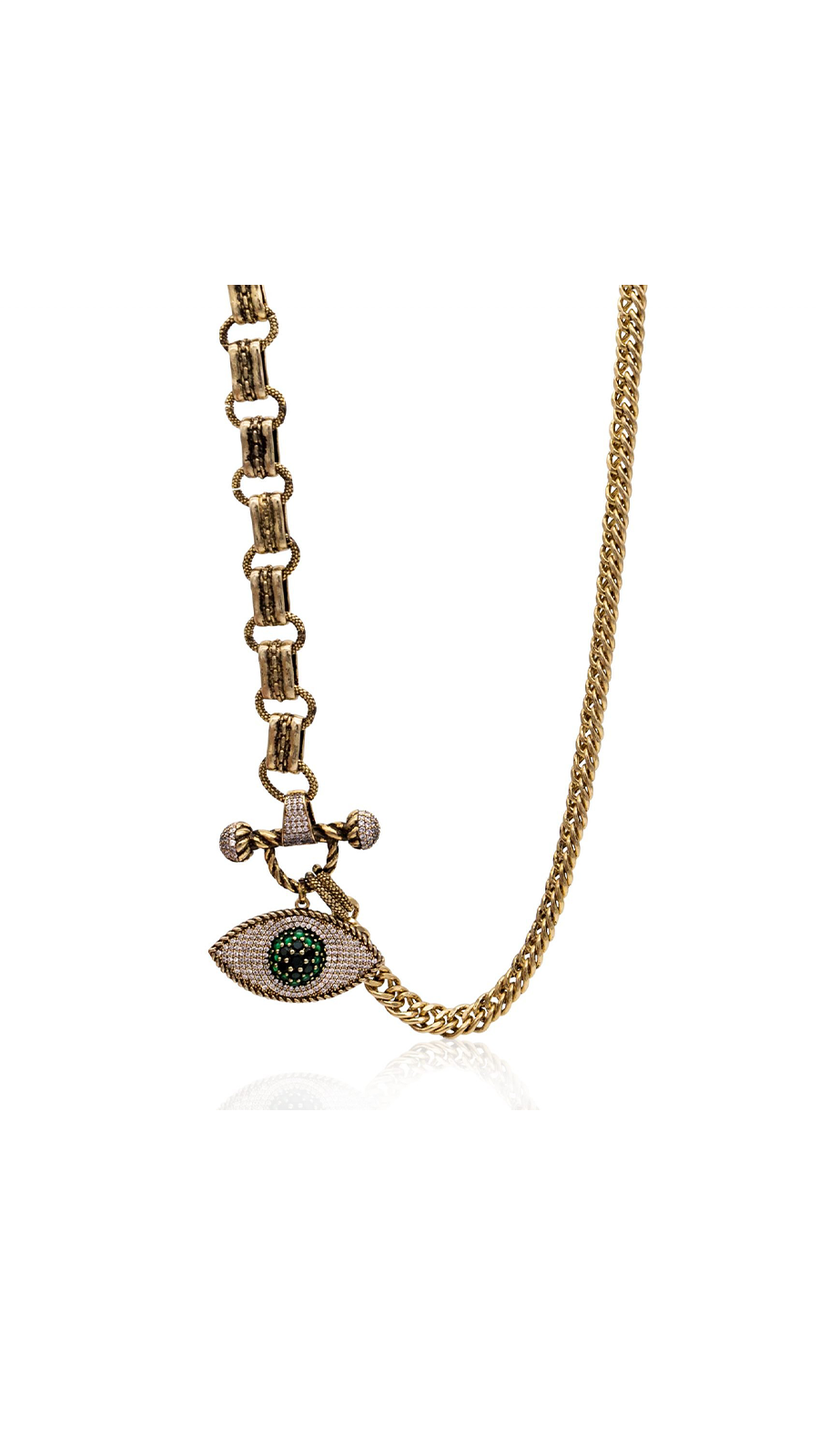 Bayemeyc'in ELOI Altın Kaplama Göz Kolyesi, eski dünyanın gizemini ve modern tasarımın zarafetini bir araya getiren, ikonik bir aksesuardır. Bu kolye, 22 ayar altın kaplamalı pirinç zincirlerin dikkat çekici birleşimi ile başlar. Onların buluşma noktasında, kristal taşlarla bezenmiş bir ara materyal parlar ve buradan, tarihin tozlu sayfalarından fırlamış gibi, kristal taşlarla süslenmiş bir göz sembolü sarkar. Göz sembolü, koruma ve bilgelik anlamına gelir ve ELOI Altın Kaplama Göz Kolye'yi sadece bir aksesuar olmaktan çıkarıp, taşıyan kişiye güç ve ilham veren bir talisman haline getirir. Gece gökyüzünden esinlenen ELOI Altın Kaplama Göz Kolye, göz alıcı kristal taşlarla süslenmiş göz sembolü ile her zaman ilgi odağı olmayı başarır.